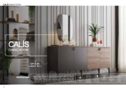 • • • Modern design design • • • Harmonious combination of of wood wood and anthracite • • • 3D design design owing to to to to the the the the linear structure of of the the the the wooden decor decor • • • • Ability to to to to customize the the the the the decoration thanks to to to to the the the the the switchable cabinet doors • • Shiny smoke-colored handles • • • Legs matching matching the the the the Calis Living Room • • • Mirror design reflecting linear wooden decor decor • • • • Wooden decor decor on on table surfaces • • • • The chairs matching matching the the the the design with the the the quilting stitching on on the the the back • • • Bench offering storage feature