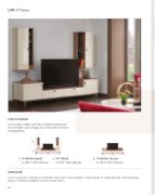 G: 1786 Y: 521 D: 458 (mm) • • • • Ceviz ve ışıltılı ekru rengin göz alıcı birlikteliği • • • • Özel tasarım rose renk kulplar • • • • İki farklı ölçüde TV sehpası alternatifi • • • • Estetik üst dolap tasarımı • Kendinden yavaşlatıcılı ve ayarlı menteşe sistemi