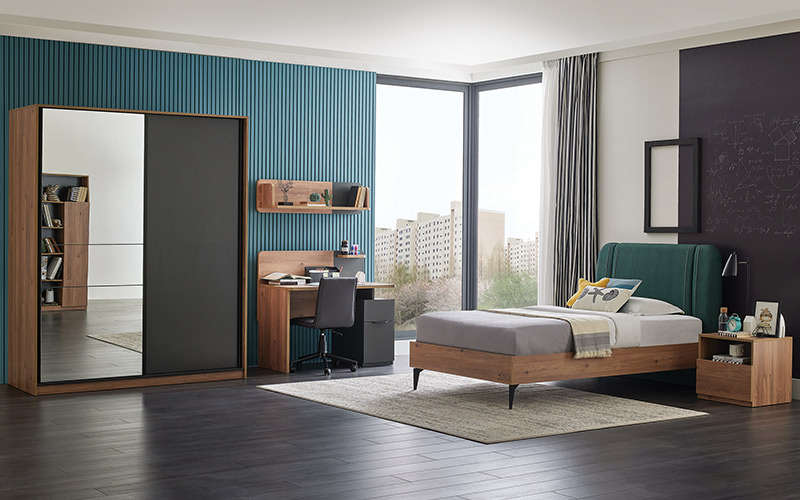 Genç odalarında sık karşılaşılan dağınıklık sorununu azaltmak için modüler mobilyalar tercih edilebilir. Açık raf sistemleri, çekmeceli yatak altları ya da bölmeli dolaplar hem düzenli bir görünüm sağlar, hem alanı verimli kullanmanıza yardımcı olur, hem de odada hareket özgürlüğü bırakır. Özellikle modüler genç odası mobilyaları oda düzeninde esnek çözümler sunar.