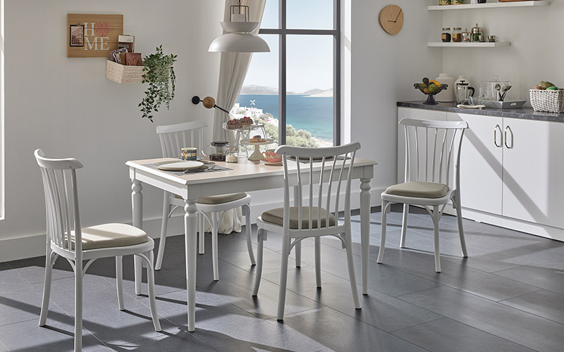 Küçük alanları olabildiğince ferah göstermek istiyorsanız, sade ve net mobilyalar seçmeniz gerekir. Sadelik, küçük alanlarda yerden tasarruf etmenizi ve aynı zamanda ortamı daha düzenli tutmanızı sağlar. En popüler seçenek açık renklere ve net çizgilere sahip modellerdir. Gösterişsiz, sade ve yalın dikdörtgen veya kare tasarımlar, mutfağın genel anlamda daha ferah hissettirmesini sağlayabilir. Beyaz veya açık renklerde yuvarlak mutfak masası da sadelik açısından doğru bir seçim olabilir. Yuvarlak tasarımlar aynı zamanda etrafa daha fazla sandalye koymaya izin verdiğinden küçük mutfaklarda oldukça kullanışlıdır.