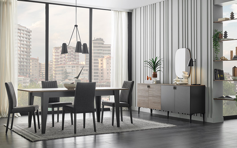 Antrasit koltuklar, masalar ile ahşap zemin veya mobilyalar arasındaki bu kontrast, sadeliği vurgularken sıcaklık ekleyerek samimi bir ortam yaratır. Çünkü mobilya seçiminde renk uyumu kadar tonların birbirini kusursuz şekilde tamamlaması da önemlidir. Örneğin antrasit renk tonları sadece koyu ya da açık değil, farklı bazlarla daha geniş yelpazede sunulur. Bu nedenle antrasit mobilya dekorasyonu yaparken renklerin sıcak-soğuk bazlarını da dikkat almalısınız. Fakat ahşap - antrasit uyumu söz konusu olduğunda bu baz renkler göz ardı edilebilir.