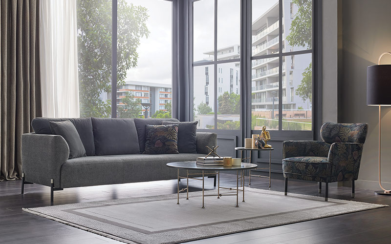 Desenli kumaşlar, döşemeler veya farklı dokular kullanarak antrasit mobilyalarla derinlik elde edebilirken aynı zamanda mekanın dinamiğini de artırabilirsiniz. Çünkü mobilya seçiminde renk uyumu en az konfor ve dayanıklılık kadar önemlidir. Ana tema antrasit ve kontrast olduğundan temel mobilyaları antrasit renk tonlarında seçerek dekorasyona başlayabilir, kontrast sağlamak amacıyla sehpa, puf gibi tamamlayıcı mobilya seçiminde beyaz, siyah, krem, gri gibi renklere yönelebilirsiniz. Böylece mobilya seçimi ile ana temayı uyguladıktan sonra desenli ve dokulu ev tekstilleri ile son dokunuşları yapabilir, dekorasyon stilinizi dilediğiniz şekilde tamamlayabilirsiniz.