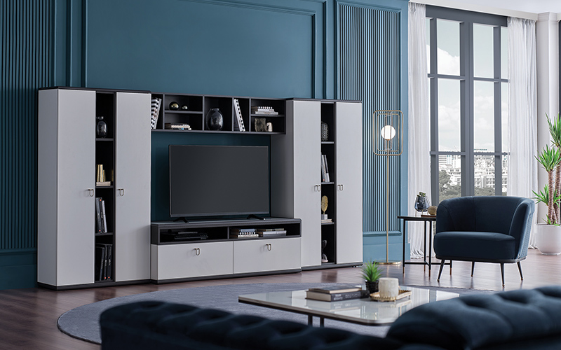 Her salonun vazgeçilmezi olan TV üniteleri, sadece televizyonunuzu yerleştirebileceğiniz bir alan olmakla kalmaz aynı zamanda renkleri, görünümlü veya metal detayları ile salon stilinizi anında değiştirir. Bu sebeple de seçim yaparken, diğer salon mobilyalarınız ile uyumlu olmasına özen göstermeniz gerekir. Ancak TV ünitesi, televizyonun yanında dekoratif eşyalarınızı, CD ve kitaplarınızı, hatta kişisel olan bazı eşyalarınızı bile konumlandırabileceğiniz alana sahip olmalıdır. Bu işlevsellik, salondaki dağınıklığı ortadan kaldırabilmek ve daha düzenli alanlar yaratabilmek gibi avantajları beraberinde getirir. Eterna TV ünitesi, modüler tasarımı sayesinde alanınıza uygun seçenekleri size sunmasıyla ön plana çıkar. Eğer kişisel eşyalarınız için fazla alana ihtiyacınız varsa modüler tasarımın getirdiği fonksiyonellikten yararlanabilirsiniz. Bununla birlikte tv ünitesinde bulunan açık sergileme rafları, modernliğe önem verdiğiniz salonunuzu bir adım öteye taşıyabilir. Açık sergileme raflarında favori kitaplarınıza veya dekoratif objelere yer verebilirsiniz. Bu yönüyle raflar, modern dekorasyonun en önemli parçaları arasındadır. Renkli mumlar, minyatür figürler, hatta minik saksılar bile salonunuzu daha modern hale getirmenize katkı sağlar. Ahşap mermer desen uygulaması ile evinize rustik bir detay katacak güçlü üst modül tasarımına sahip Marla TV ünitesi, koyu ceviz rengi ve siyahı birlikte kullanarak kentsel stile destek verir. TV ünitenizi seçerken stili göz önünde bulundurmayı ihmal etmeyin.