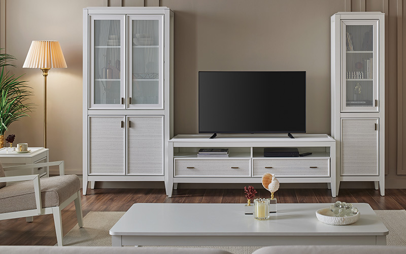 Panolu ünitenin dekorasyona katkısı, özellikle büyük salonlarda hissedilir. Geniş alanlarda duvarlar çoğu zaman boş ve etkisiz kalabilir. Panolu modeller, bu boşluğu fonksiyonel bir alan haline getirir. TV arkasında kullanılan paneller üzerine yerleştirilen nişler, ya da entegre raf sistemleri sayesinde hem estetik, hem fonksiyonel, hem de kullanışlı bir düzen kurulur. Mekânı etkili kullanmak isteyenler için, panolu seçenekler dekorasyonun temel taşı hâline gelebilir.