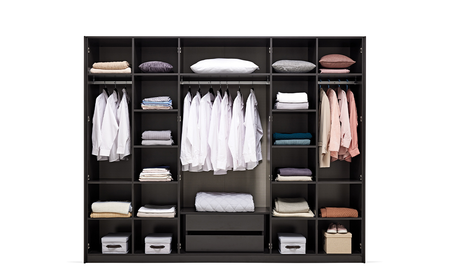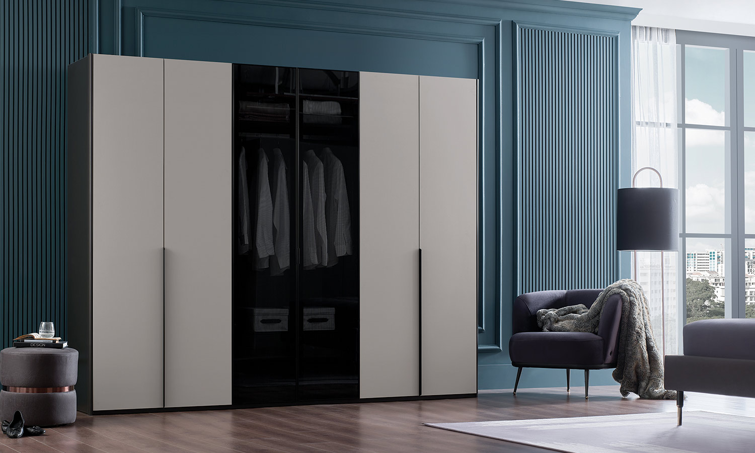 • Elegant and functional use thanks to the printed glass application on the wardrobe with 6 doors