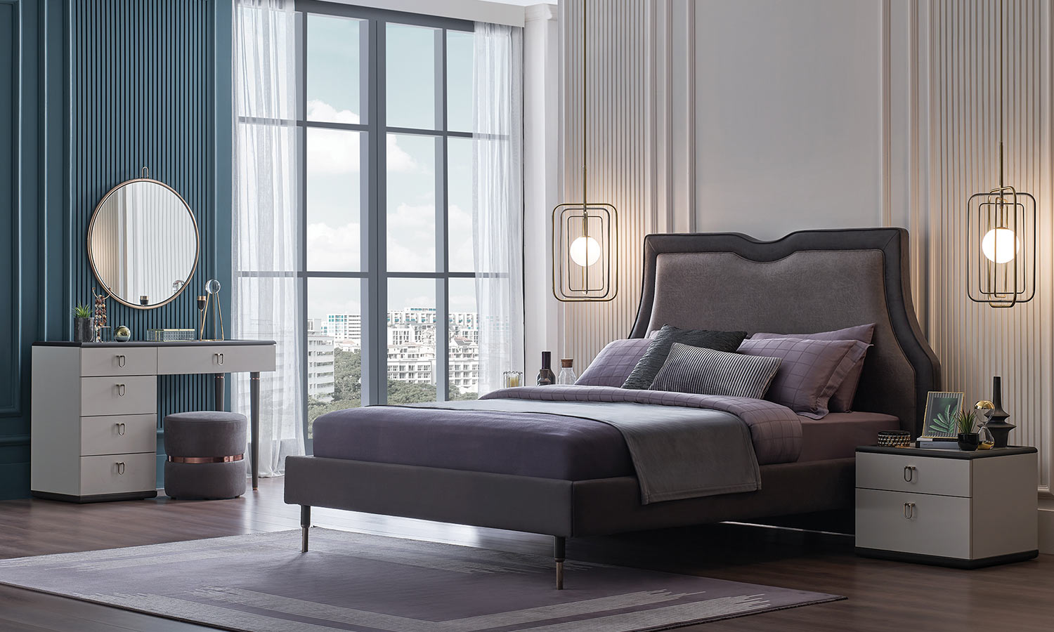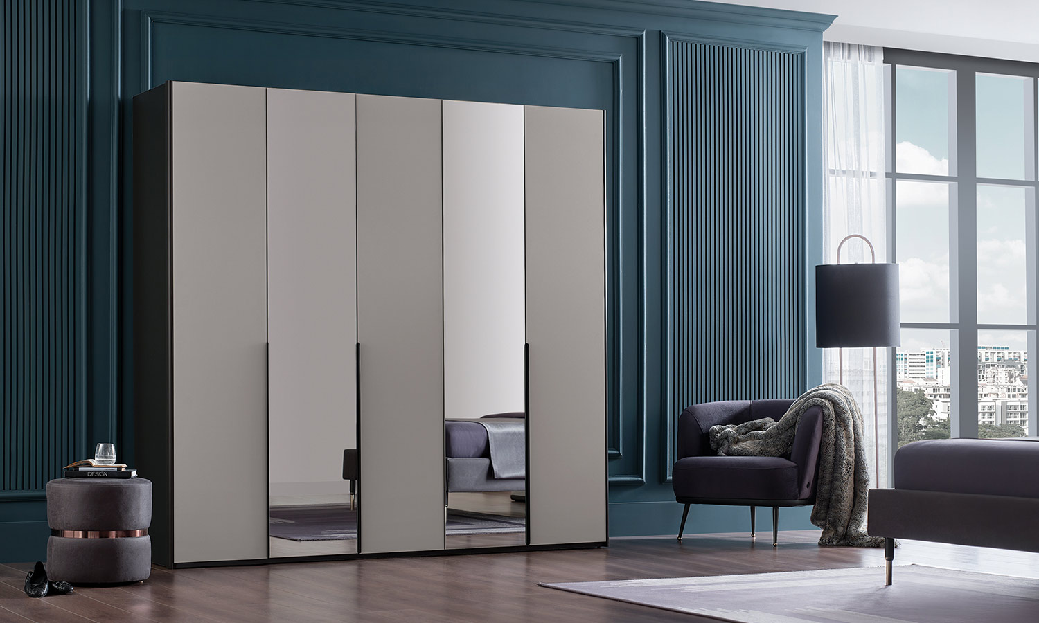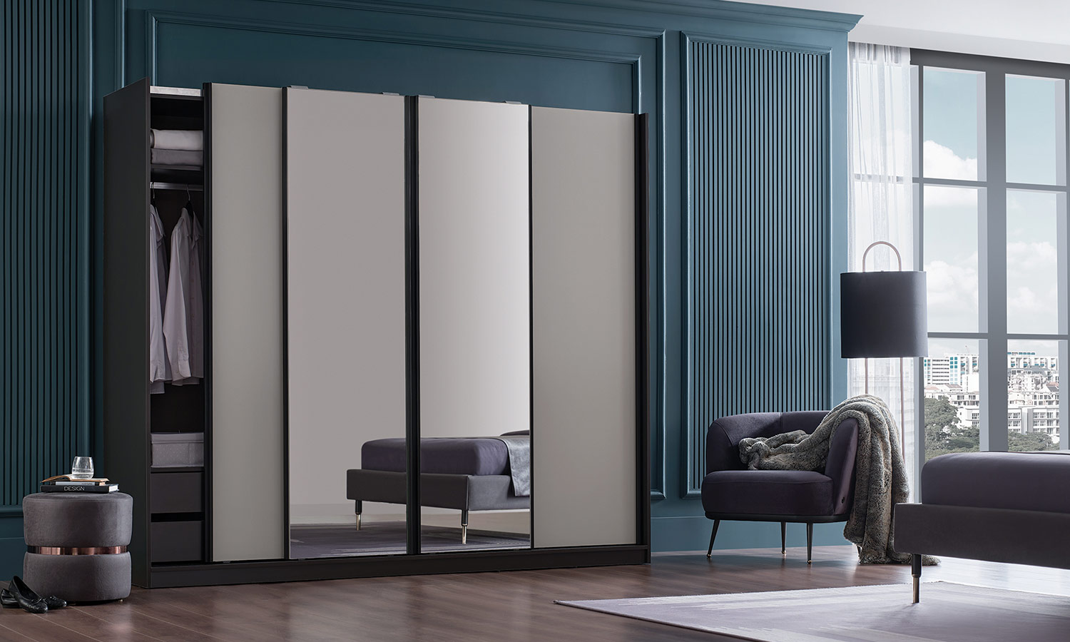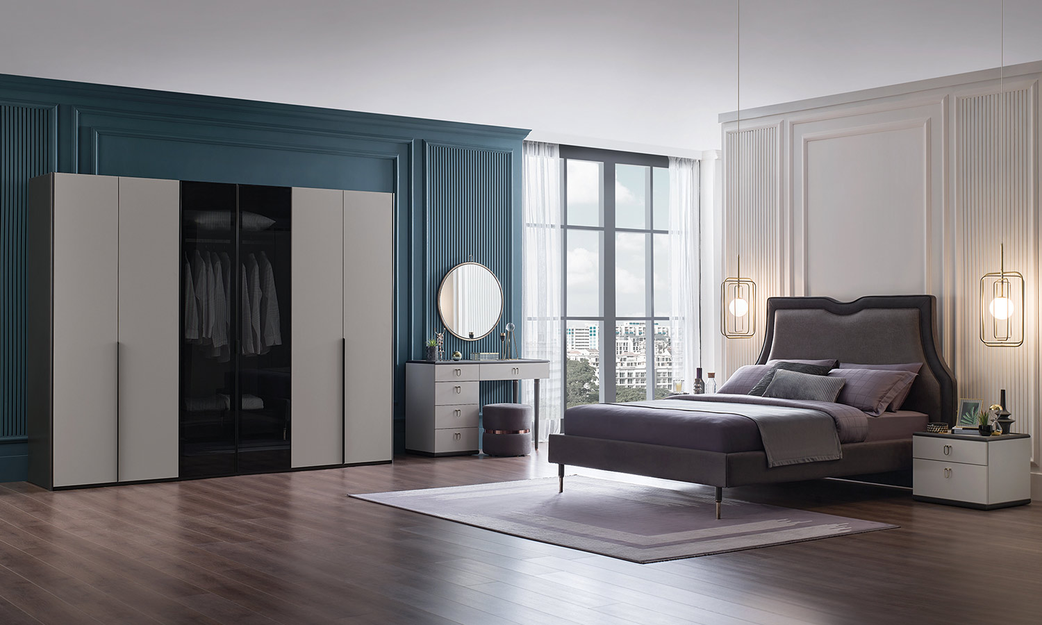 Standing out with its modern elegance, the Eterna Bedroom will be the favorite piece of those who love ostentatious decoration items. Achieving the harmony of gray and black colors, the Eterna Bedroom offers an elegant and stylish effect. It responds to different use needs with wardrobe alternatives with 5 doors, 6 doors, or sliding doors.
