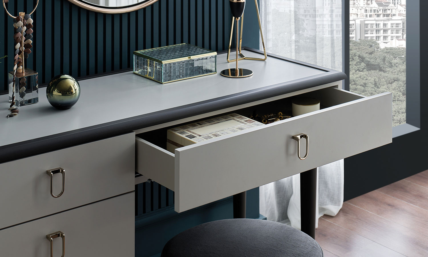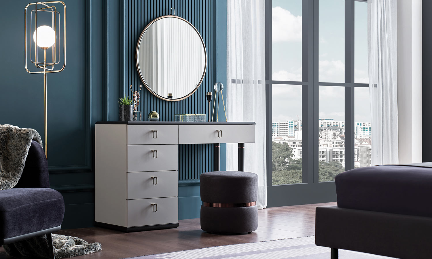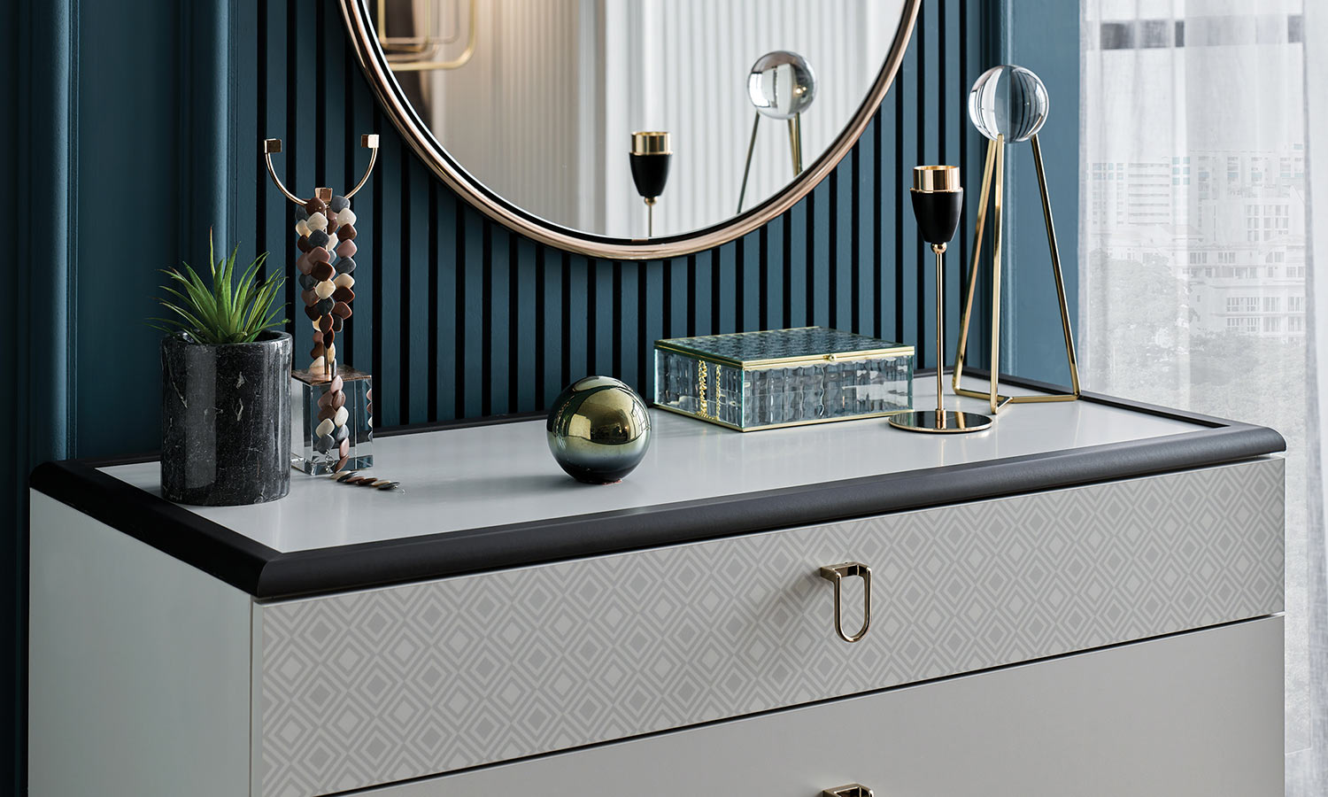 • High chest of drawers and makeup table modules offering stylish storage areas with different designs