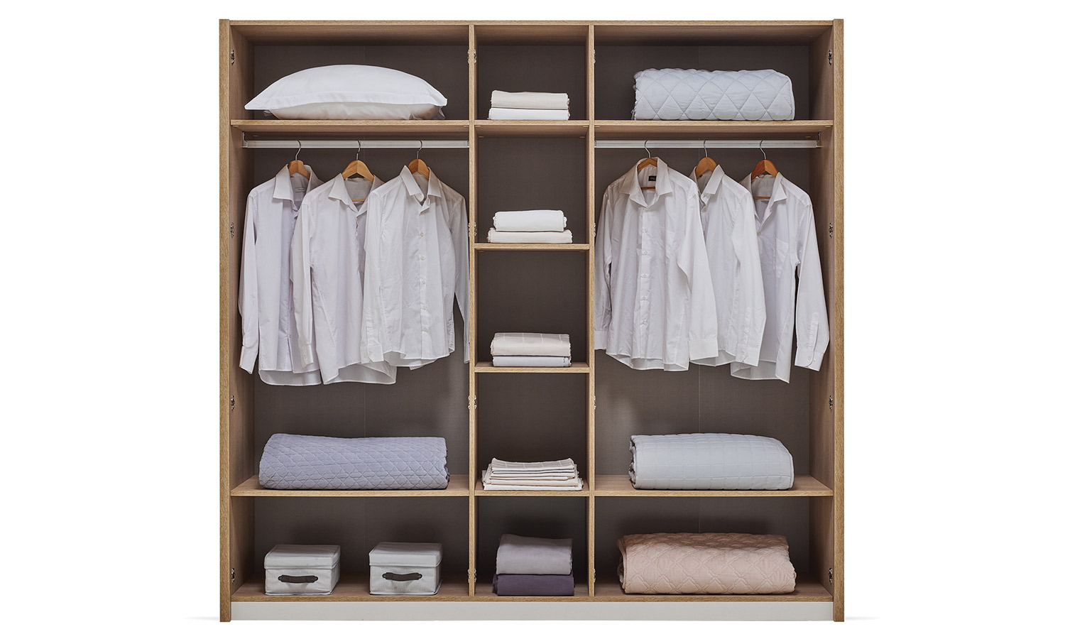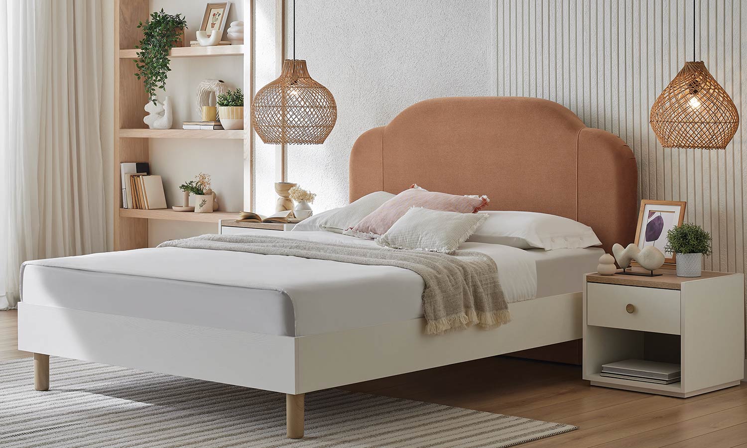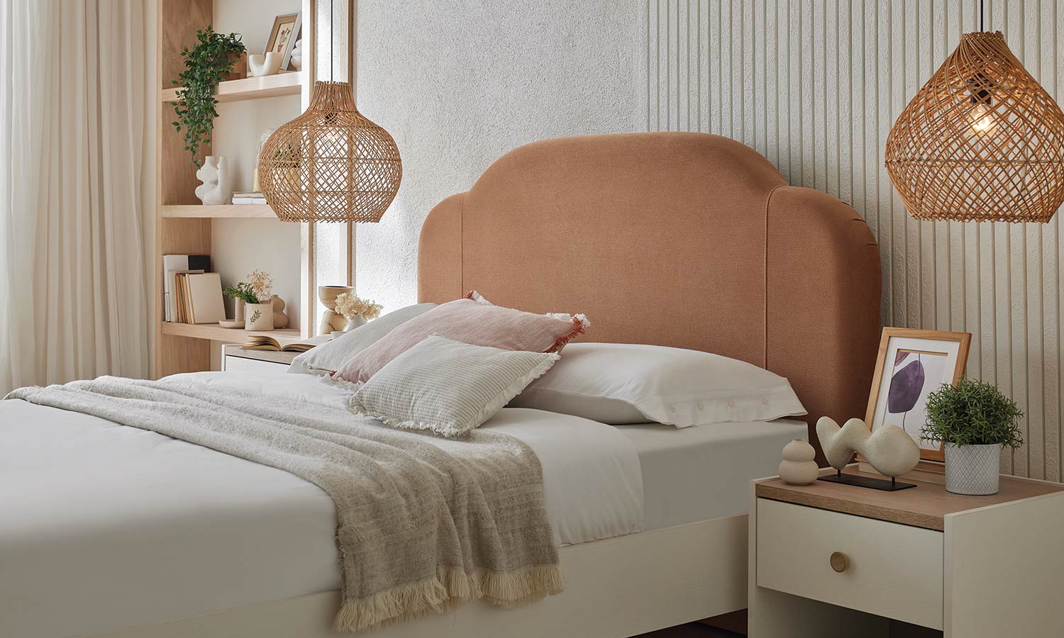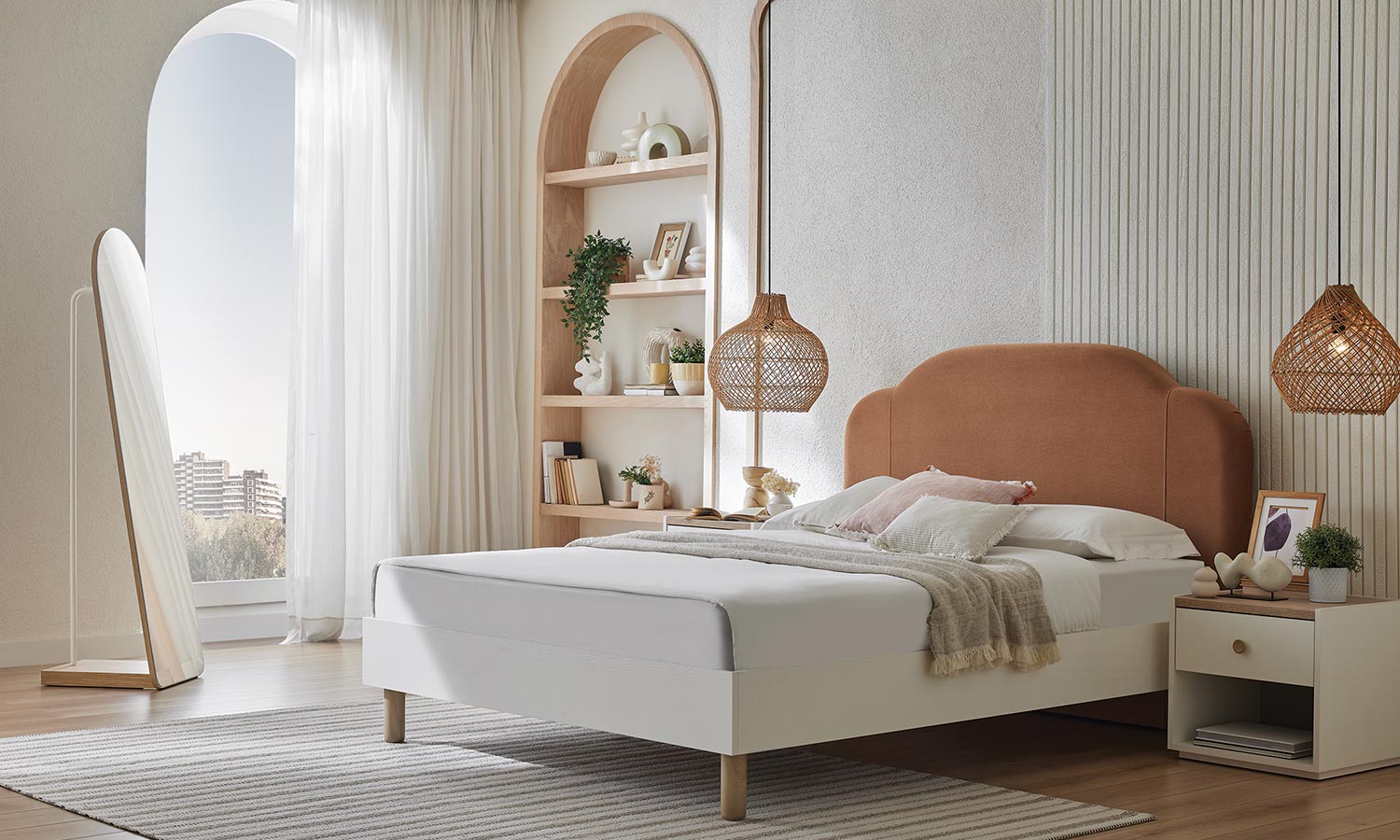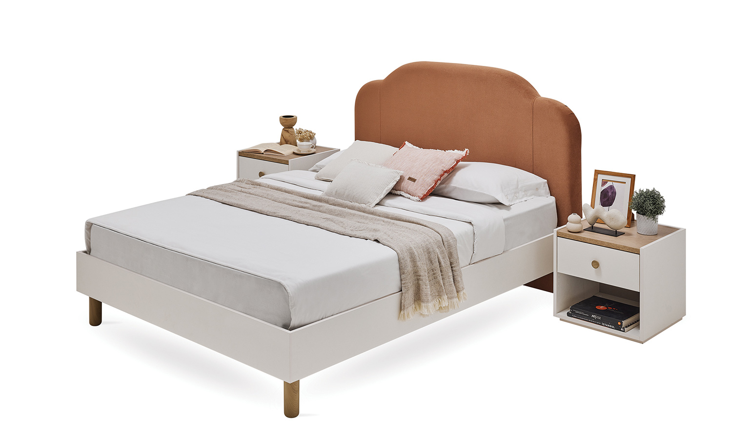 Reflecting the peaceful unity of beige and oak tones, the oval lines and arched forms of the Kozy Bedroom provide an aesthetic integrity. A variety of chest of drawers options meet every demand, and the accessory shelf behind the full-length mirror adds even more storage space. Your bedroom will be more organized and beautiful with the high chest of drawers which adds a bohemian style on the modern storage idea.