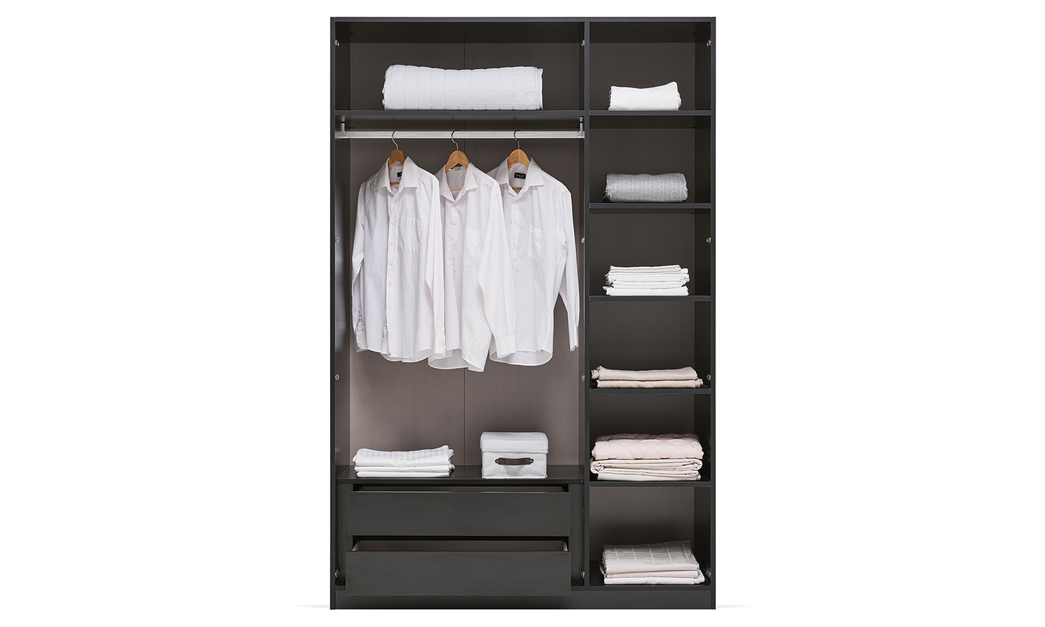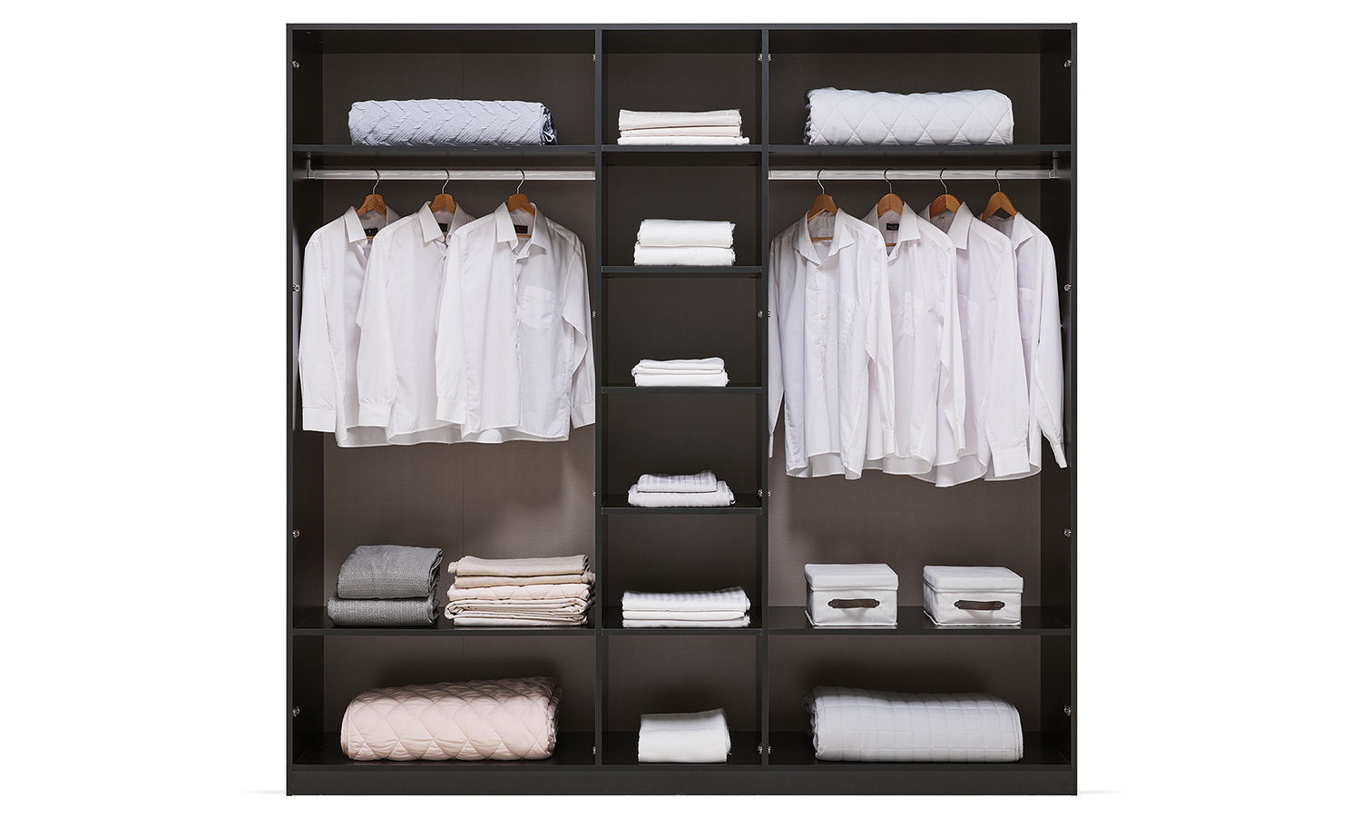 5 different wardrobe alternatives including 8-door with folding doors, 5-door, 3-door, 2-door, and corner doors