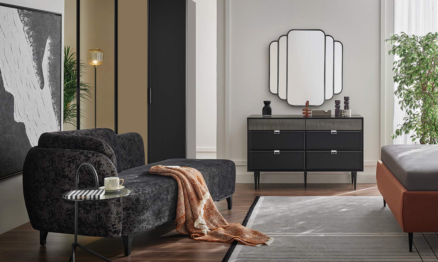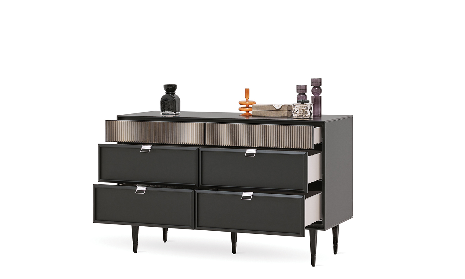 Genuine ribbed glass application on the chest of drawers, bedside table and dresser