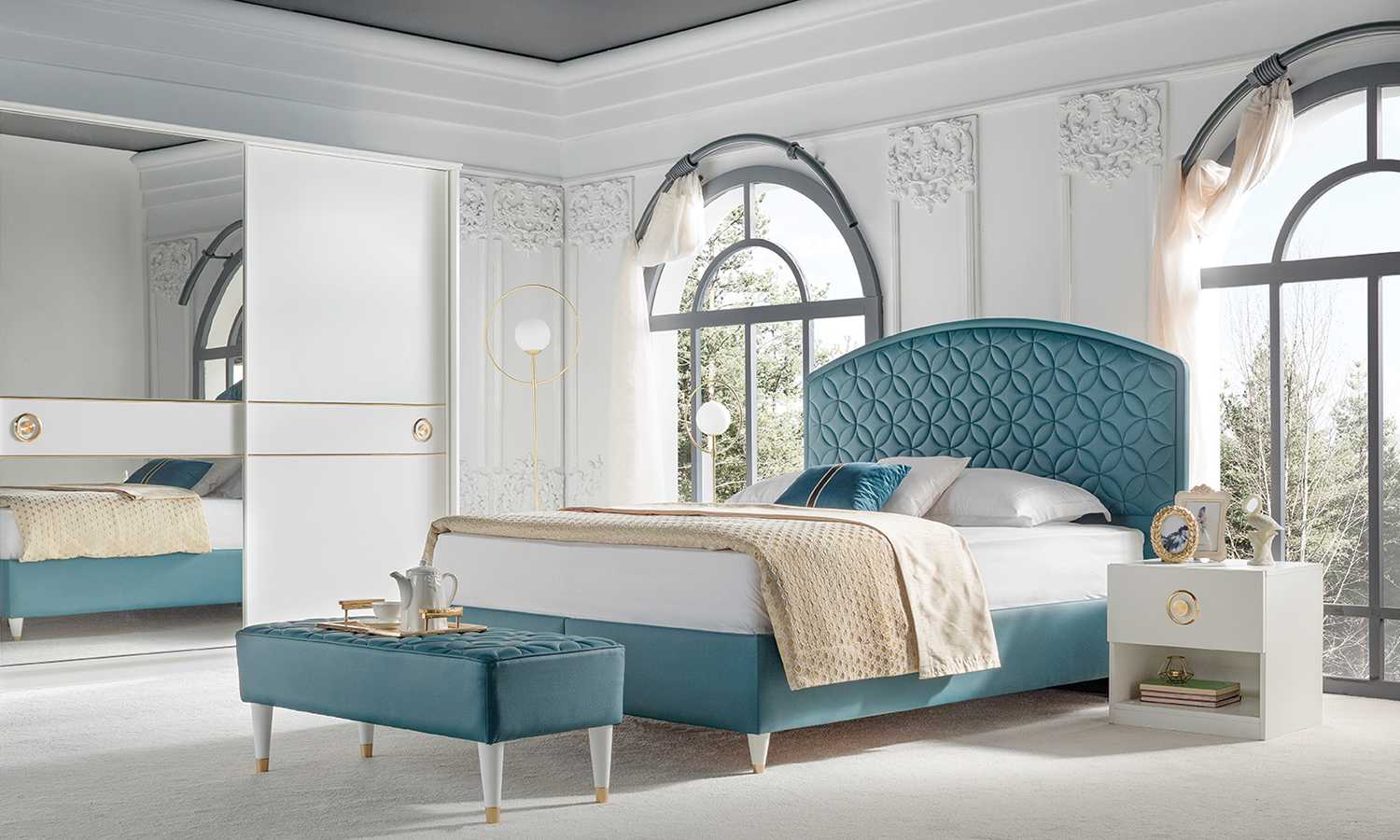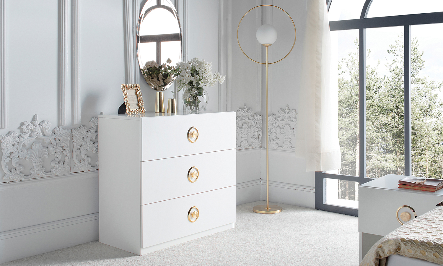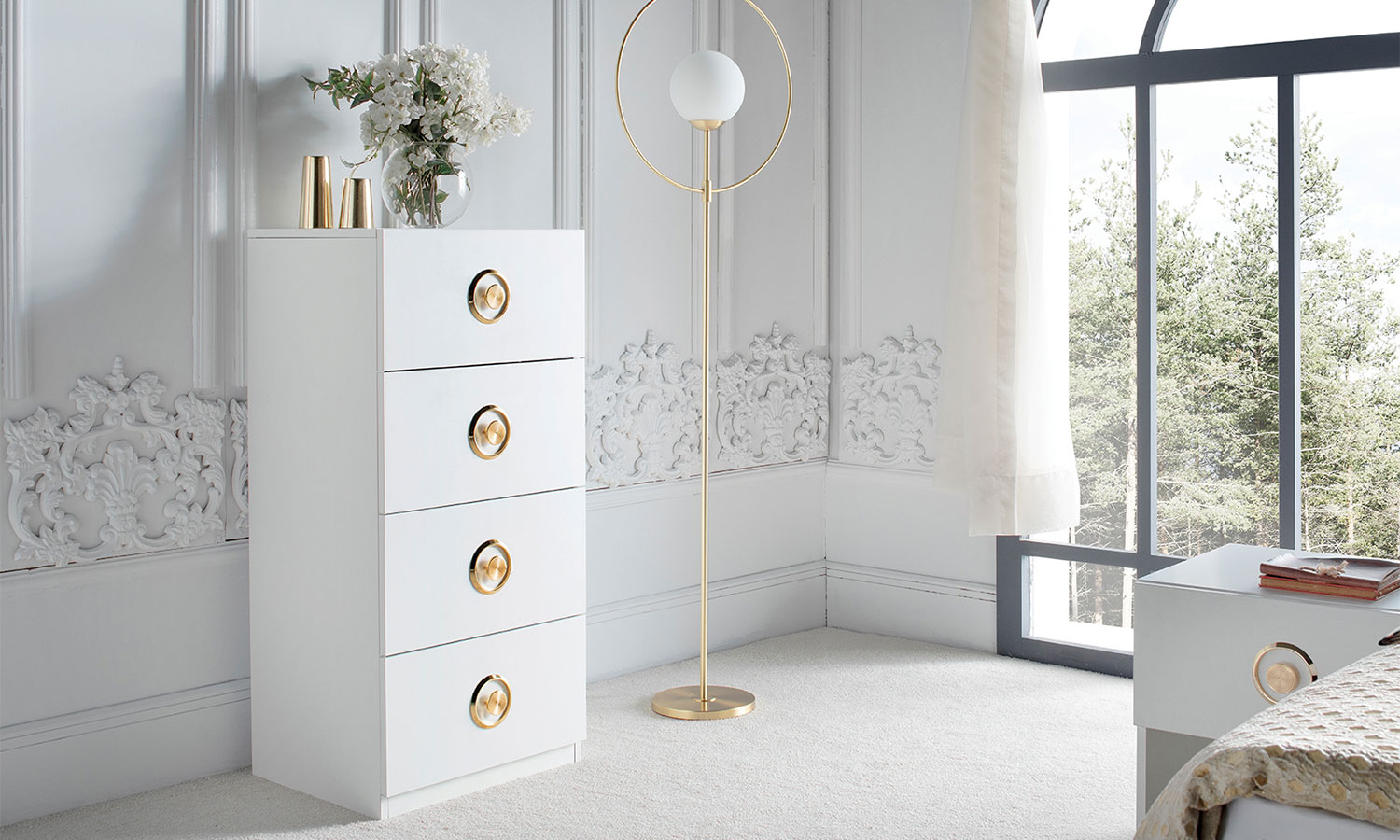 Emphasizing the contemporary design concept with its gold colour details and white surfaces, Lorena Bedroom offers you the peace and tranquillity that you are looking for. Lorena Bedroom enriches its contemporary and simple style with convenient and ergonomic modules. With a four- and five-door wardrobe options that are indispensable for stylish and tidy bedrooms, as well as a sliding-door wardrobe alternative with a stylish mirror that will make your room look much wider, it doesn't leave room for clutter in bedrooms. It creates a special corner for you with its vanity table module, which is an eyeful part of any traditional bedroom. Featured with its flawless design, handy modules and glittering gold colour details, Lorena Bedroom is waiting for you to get your dream bedroom.
