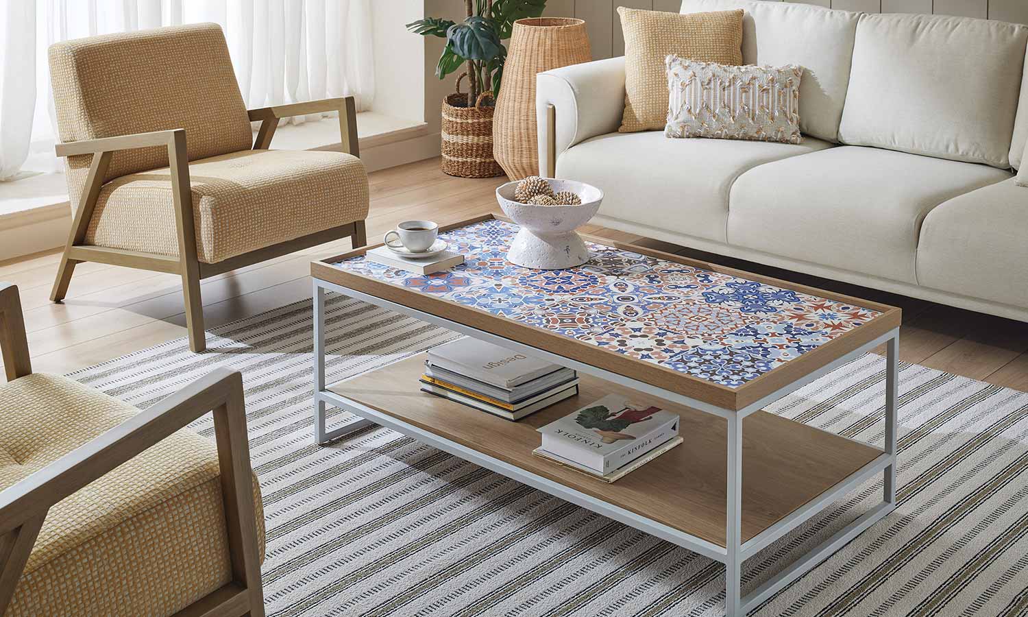 Harmony of Wood and White Color Puerta Coffee Table Series offers alternatives suitable for your personal tastes and needs with its tile-patterned coffee table with traditional lines as well as coffee table options that offer the harmony of wood and white color combination. The travertine pattern used on the coffee table reveals its aesthetics. The ottoman compatible with the series stands out as a complement to your living room.