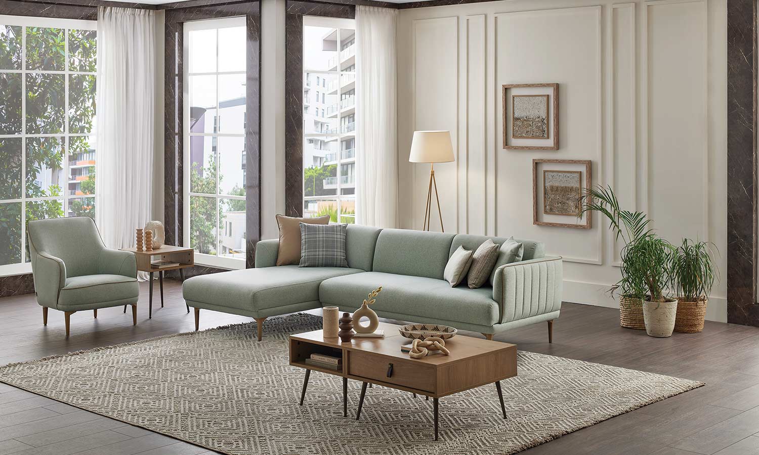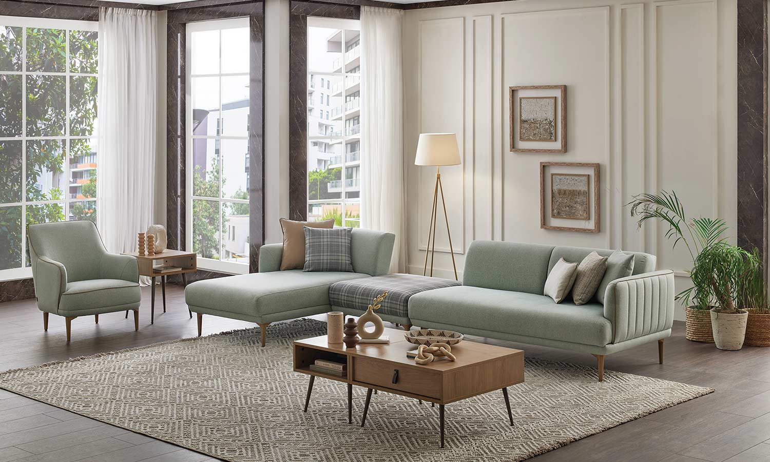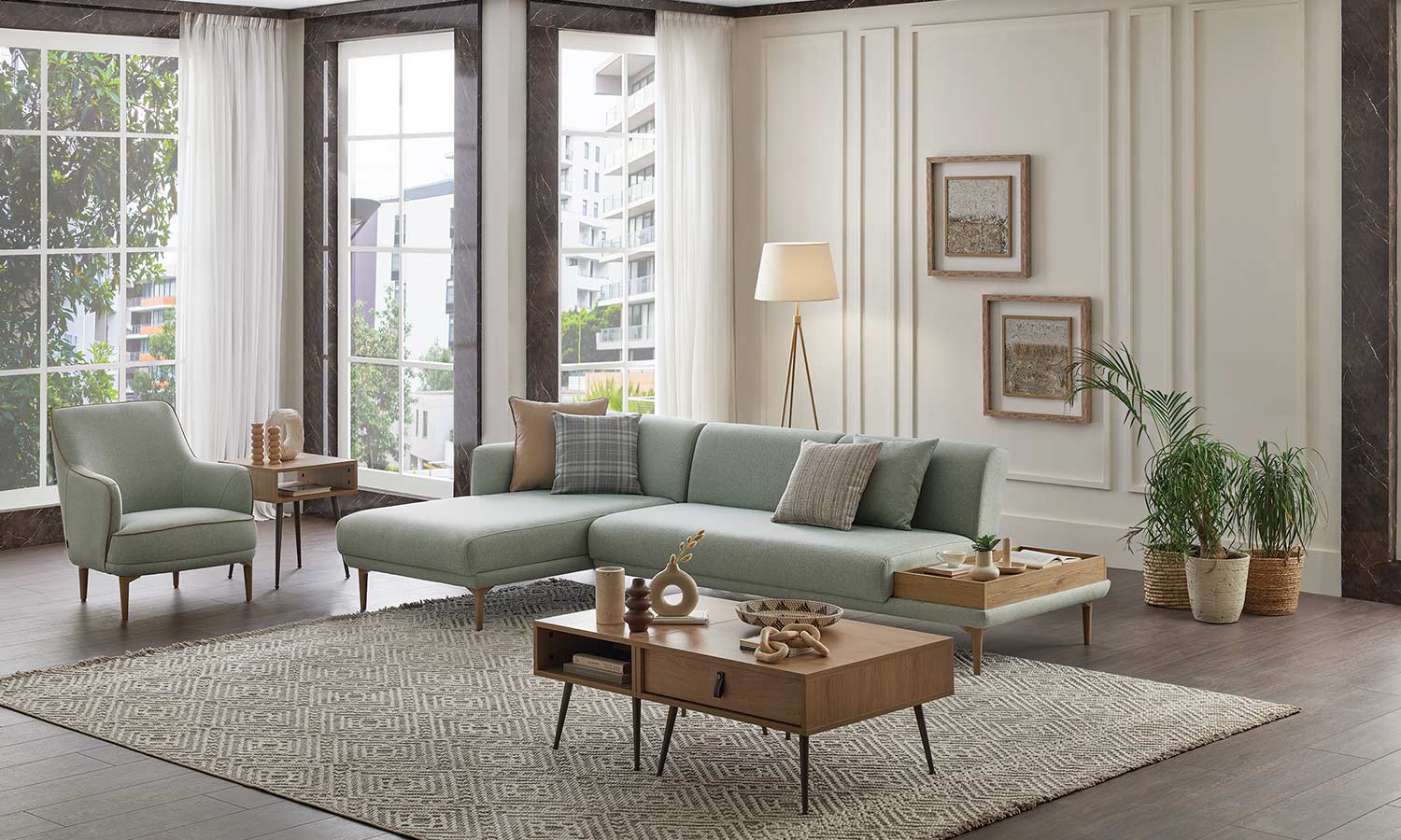 With its minimal and retro design, Helis Corner Sofa Set combines comfort and aesthetics thanks to its ergonomic foam structure. Helis Corner Sofa Set allows for customizing your living space as the fancy takes you due to its modular structure while adapting to all homes with its alternative fabric and throw pillow combination options.