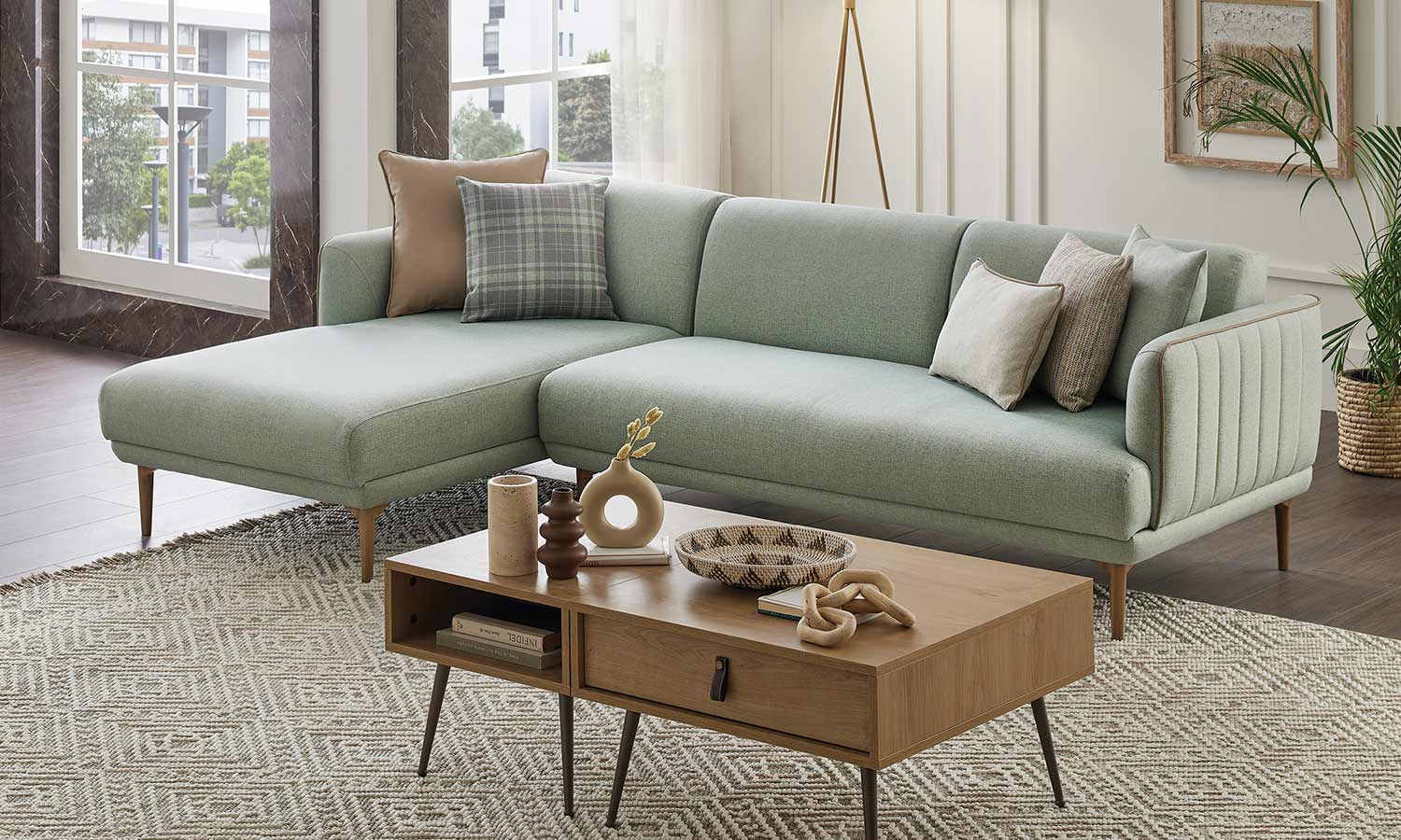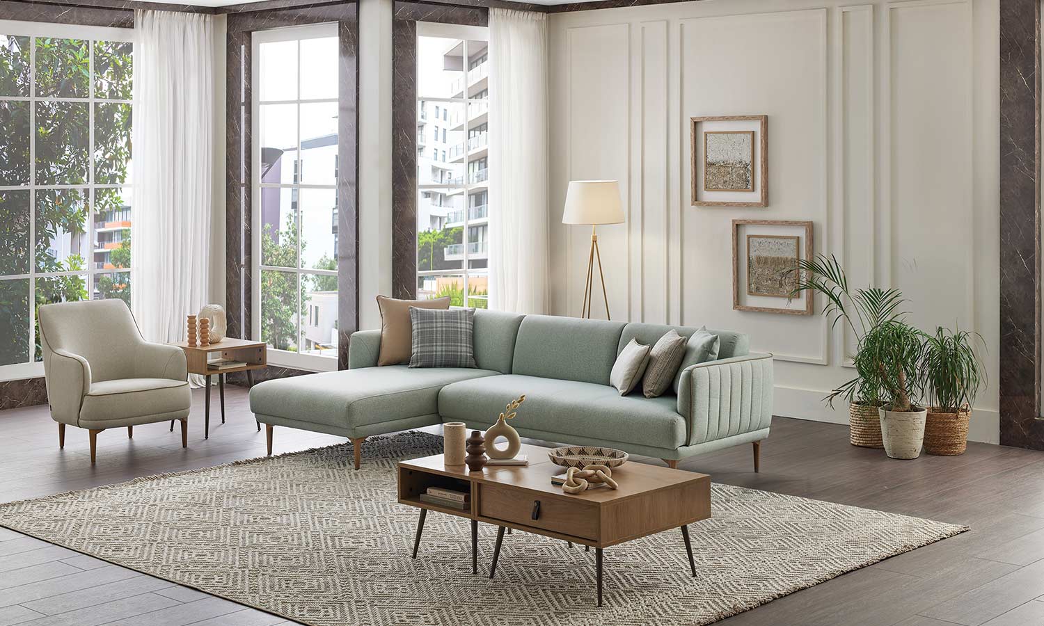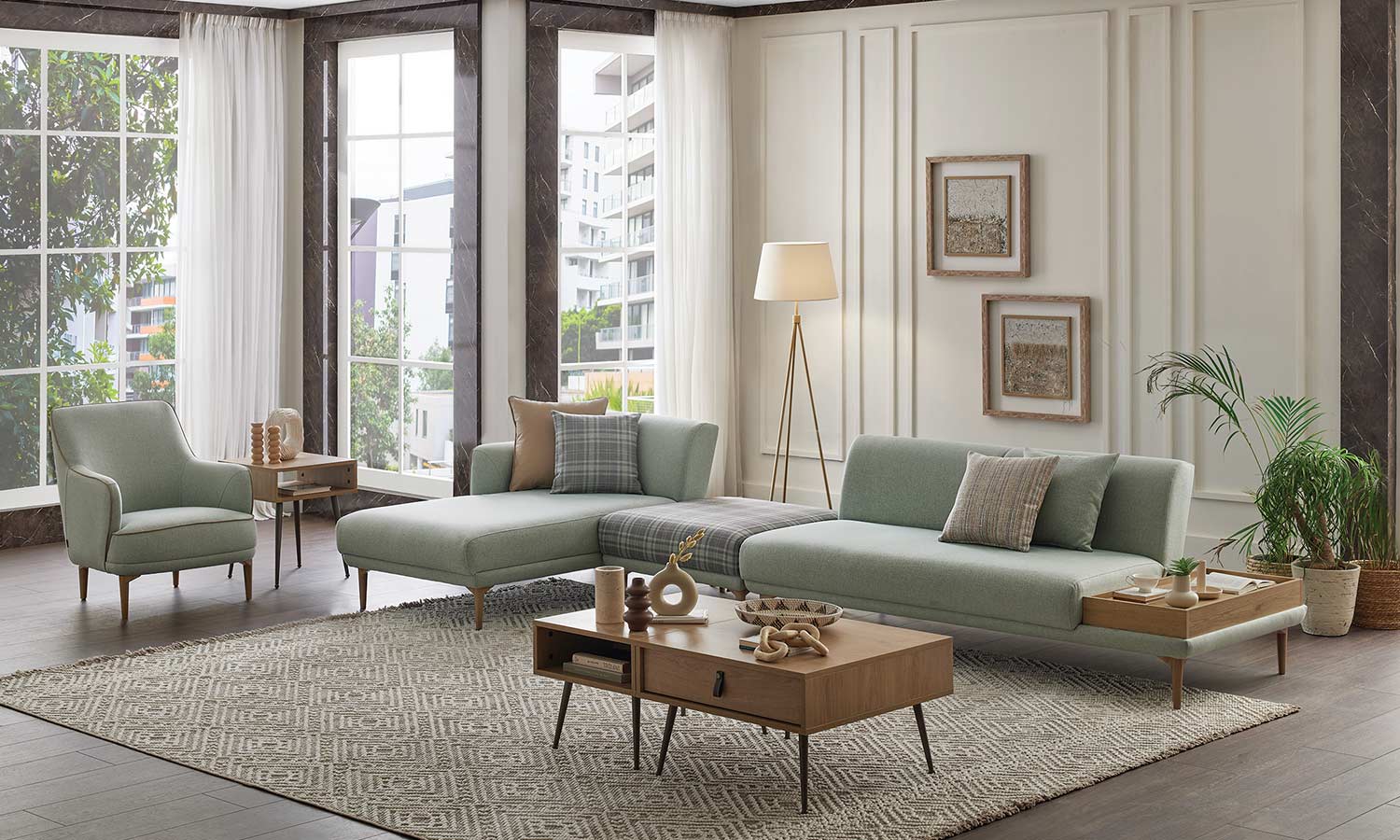 With its minimal and retro design, Helis Corner Sofa Set combines comfort and aesthetics thanks to its ergonomic foam structure. Helis Corner Sofa Set allows for customizing your living space as the fancy takes you due to its modular structure while adapting to all homes with its alternative fabric and throw pillow combination options.