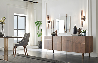 Mirrors, which enrich the decoration in the areas in which they are used, complement Divanev's contemporary-classical design line elegantly and effectively, add a stylish air to the dining rooms.
