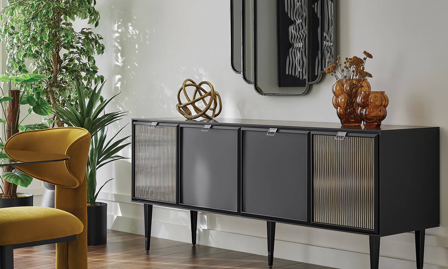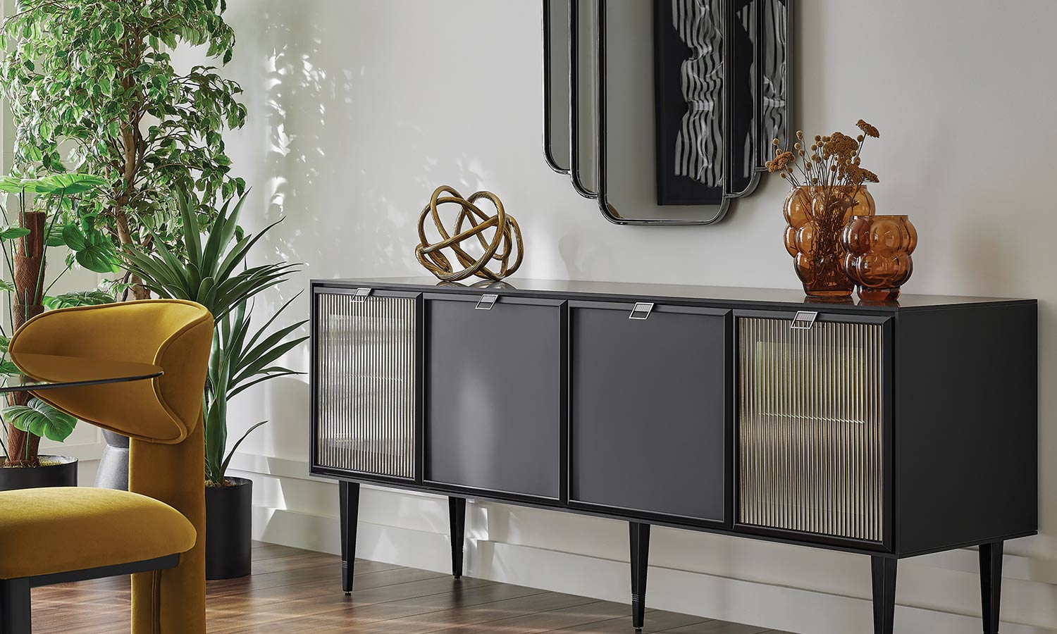 Genuine ribbed glass application on sideboard doors