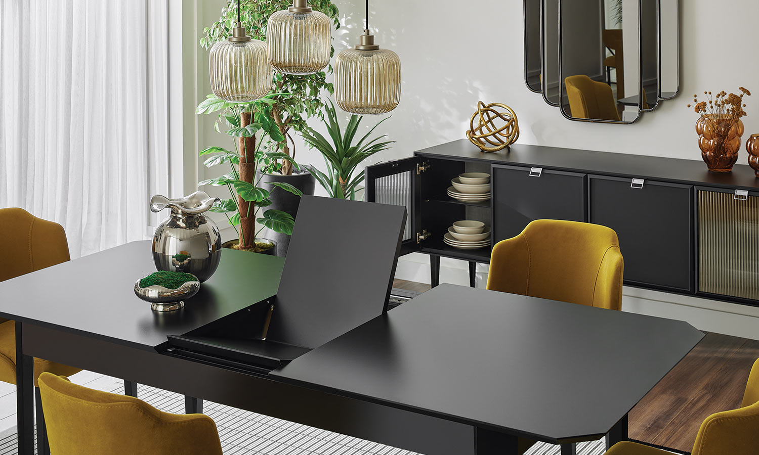 Harmony of silk black and metallic fumed reflections