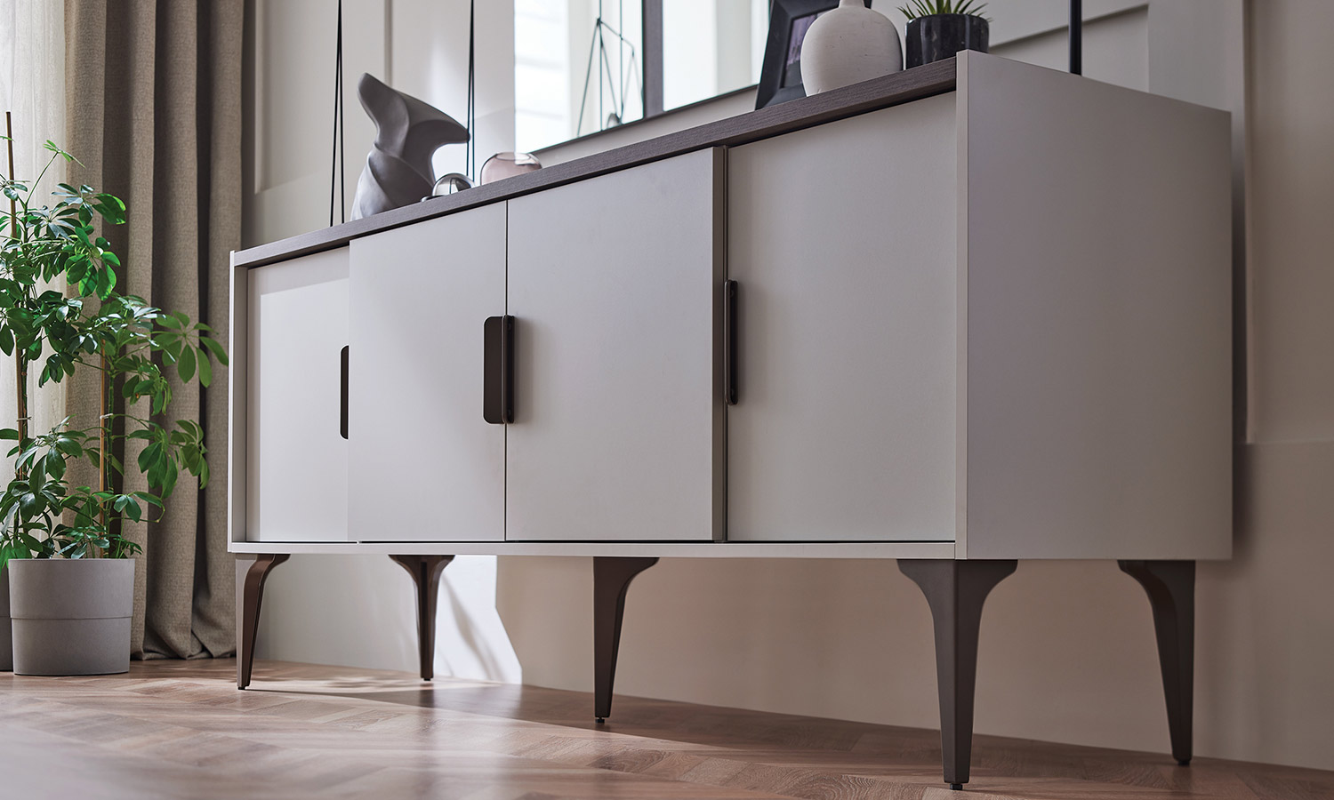 • The center doors of the sideboard are positioned forward