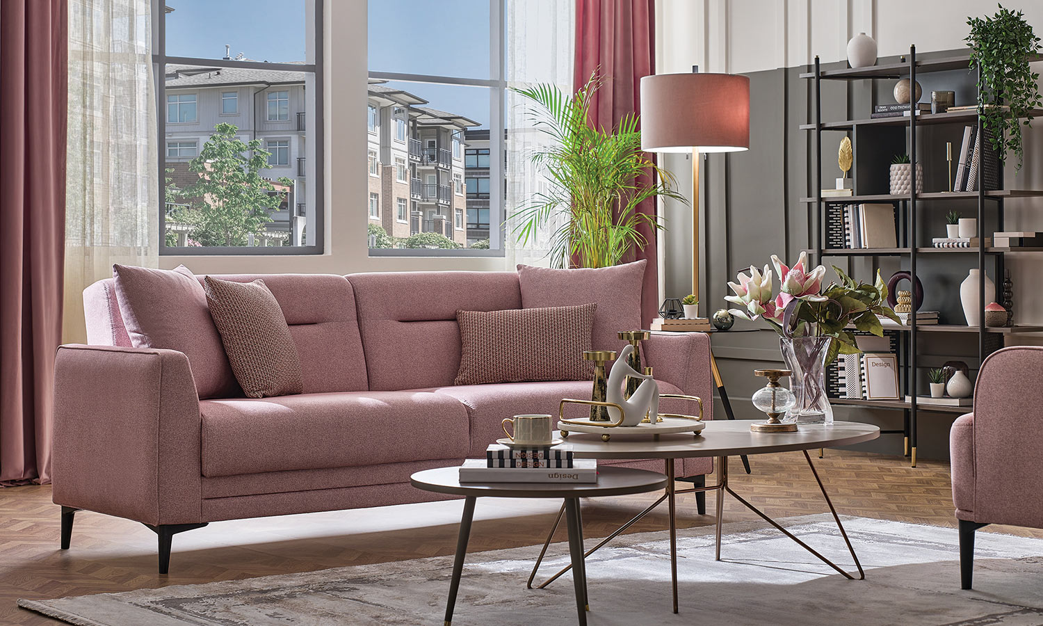 With simple and modern lines and a functional design, the Calis Living Room accompanies your joyful moments at home. It offers all details necessary for your comfort: easy-to-open/close bed mechanism, storage feature, and a high-comfort structure. It achieves a great harmony with the linen and velvet-textured two fabric color charts and flat-formed black metal leg structure.