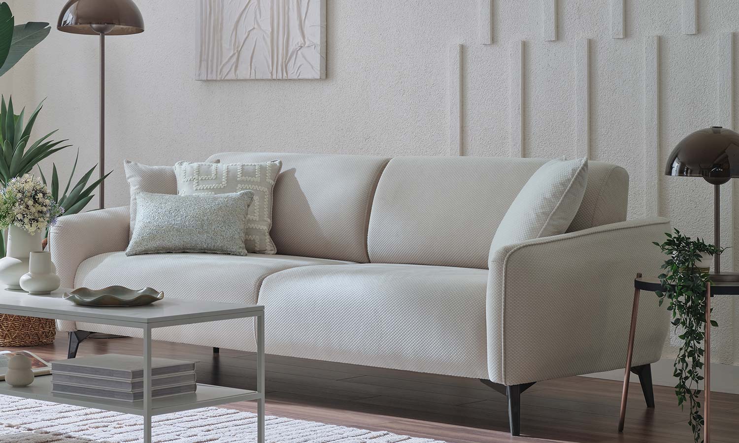 Offering comfortable seating and modern design, Agora Living Room provides a functional use with its 3-seat and 2.5-seat sofa alternatives featuring easy-to-open/close adjustable backrest mechanism. High leg structure in anthracite and walnut color create a spacious environment. Agora offers long-lasting use with its easy-to-clean linen and velvet fabric texture.