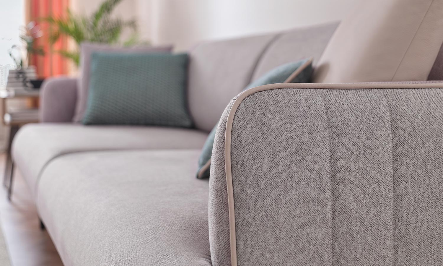 In addition to its modern and minimal design, the Helis Living Room offers a comfortable seating area thanks to its ergonomical structure. The stitchings on the outer part of the armrests complement the decoration of your home. While offering functionality with the easy-to-open/close bed mechanism, it also offers variety with velvet and linen-looking fabric alternatives. It makes cleaning easier thanks to its high leg structure with light walnut and brown color alternatives.
