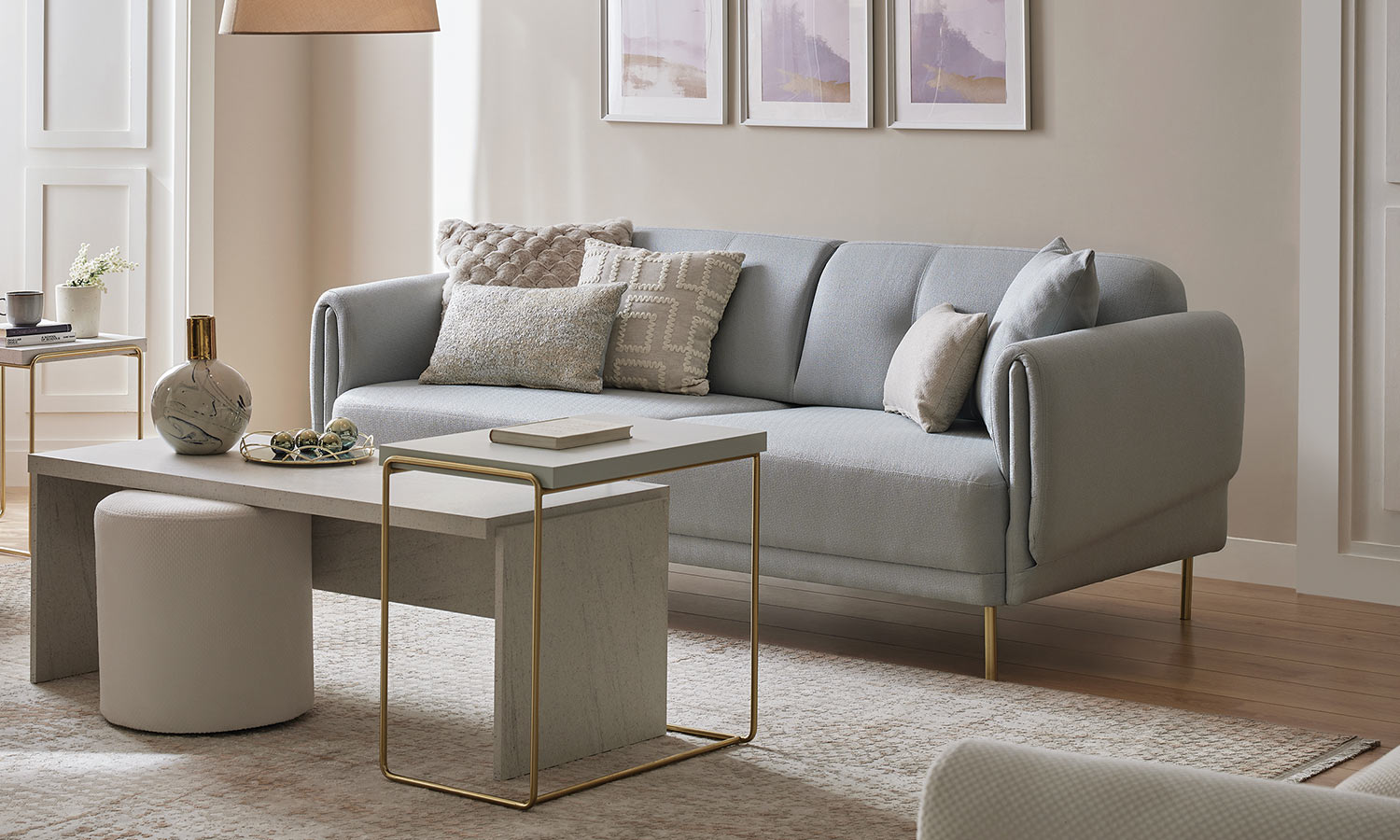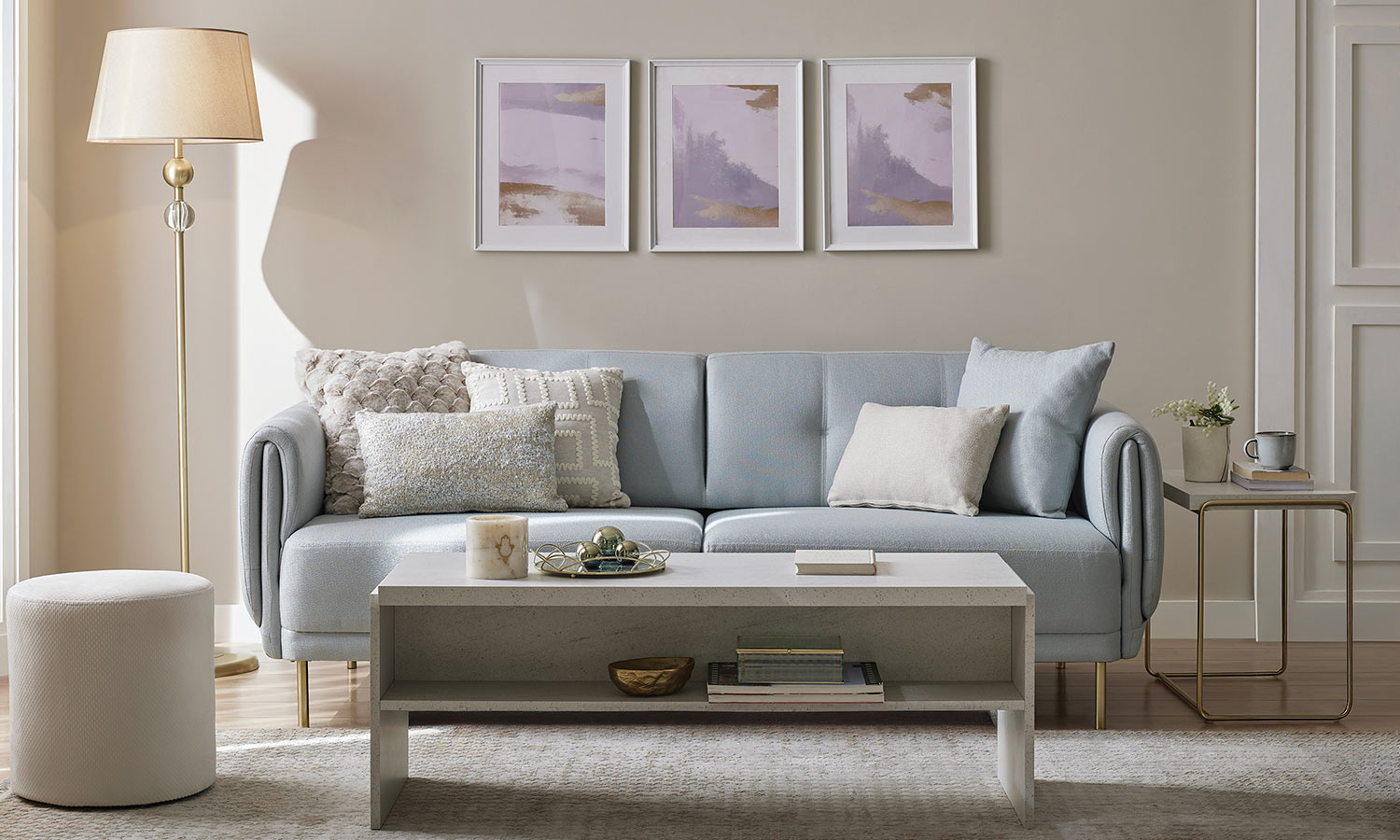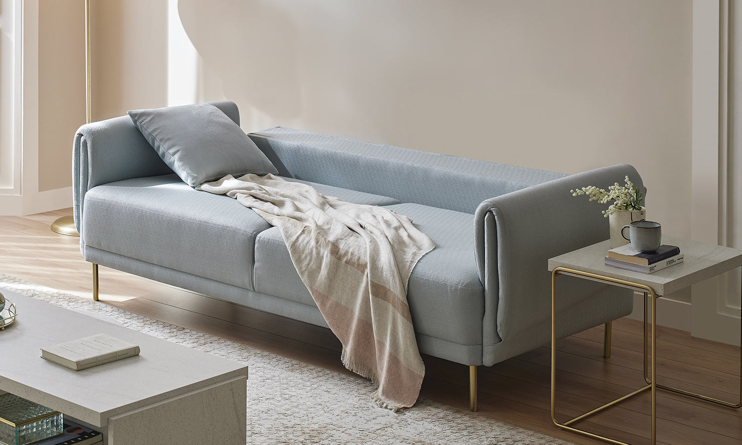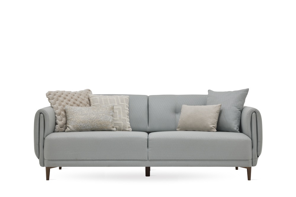 The Karlin Sofa, which draws attention with its aesthetic and modern look, stands out with its velvet and linen fabric combination. While it helps relieve the exhaustion of the day with its comfortable seating structure, it also provides functional use due to its feature of being a bed. While its easy-to-clean fabric offers effortless cleaning, the high leg structure in metal or gold color adds an aesthetic atmosphere to your room.