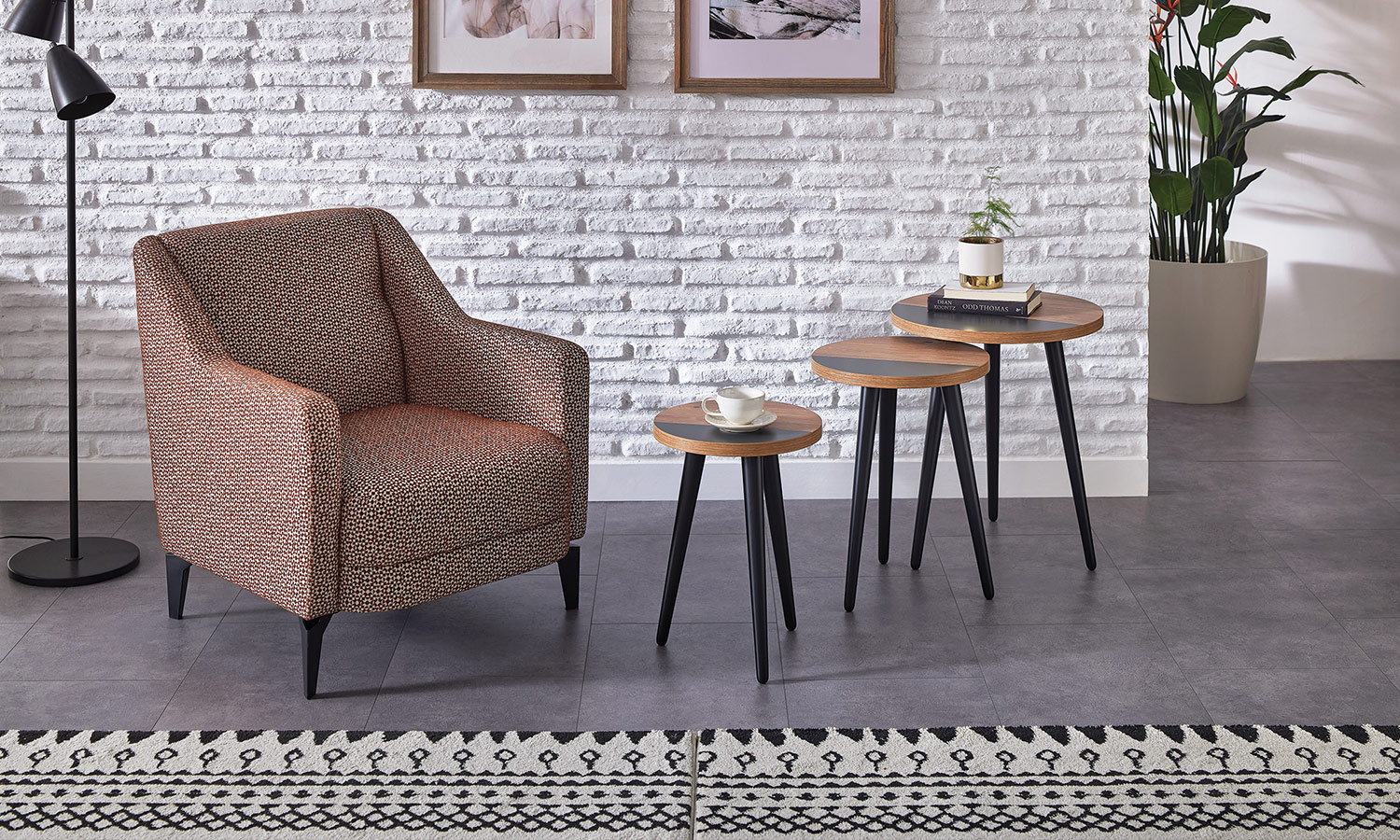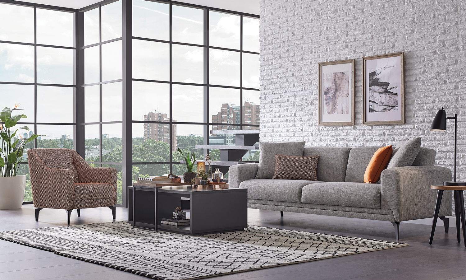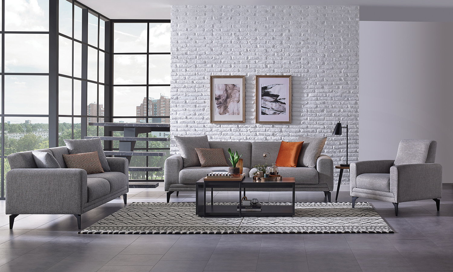 With its spacious and comfortable design, Lodi Living Room pioneers to loft style living spaces. While three seater sofa, which can be easily bed, offers spacious areas to your loved ones and you, accompanying armchair and single seater sofa alternatives carry the design you are looking for to your living room. Series’s colour alternatives, which complete its rustic breeze, and the natural looking texture create a warm living space. The leg alternatives in matt black and walnut facilitate cleaning thanks to their high structure from floor. Minimal and functional Lodi Living Room carries the comfort of being natural to your home.