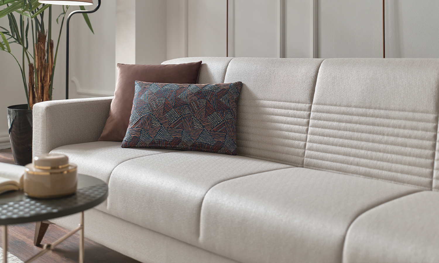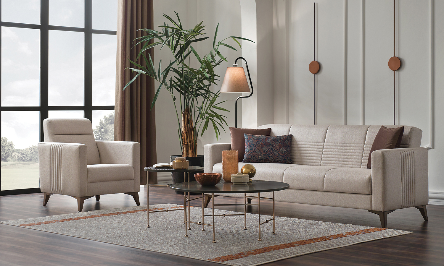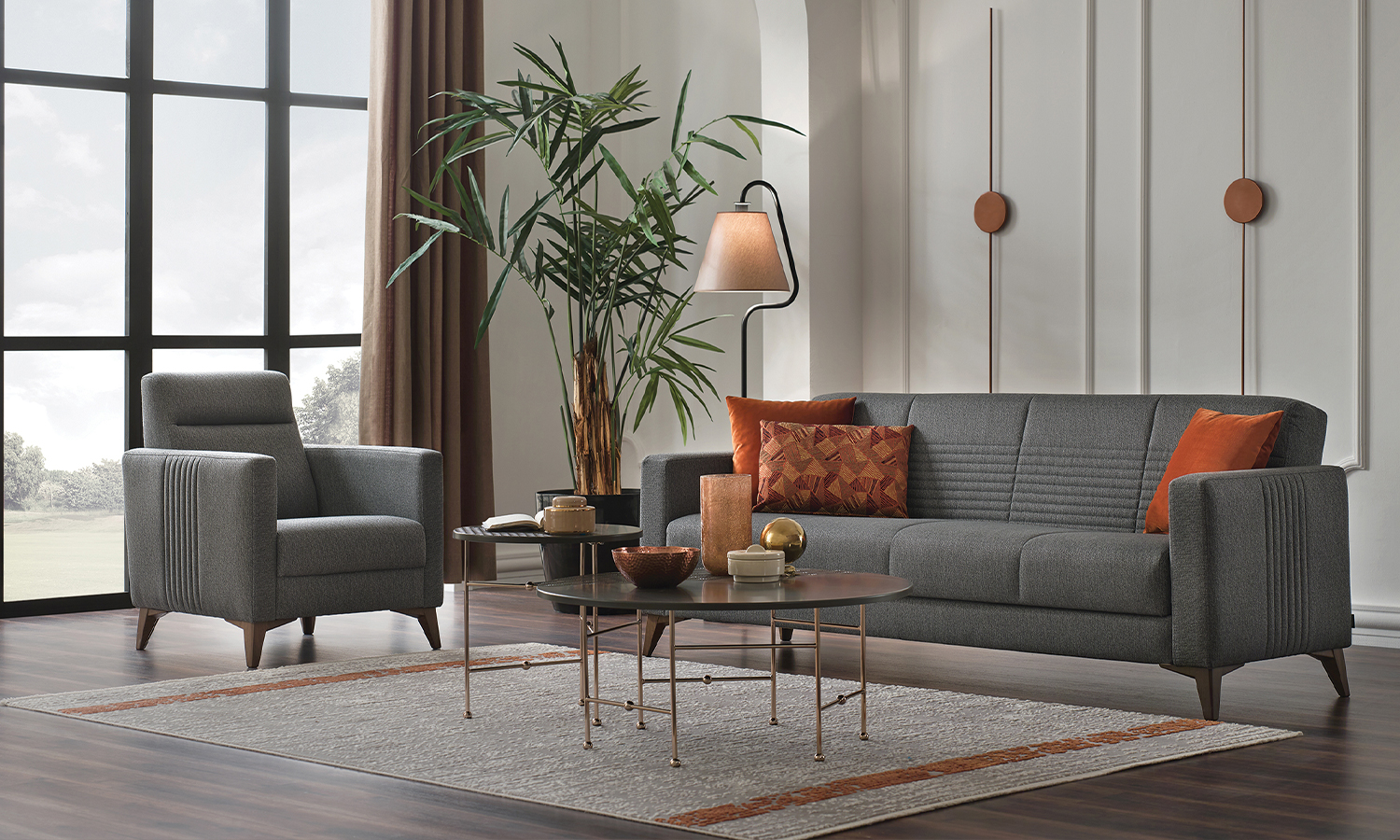 Nola Living Room will suit your home very well with its modern stance and unique color combinations. In addition to its elegance, the 3-seat sofa can easily be transformed into a bed, while the storage base feature offers you the additional storage space that you need in your living space. With velvet and linen fabric alternatives and walnut colored legs, the Nola Living Room will be the new face of comfort in homes.