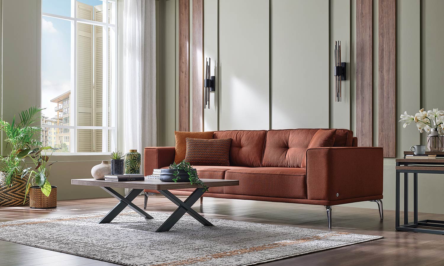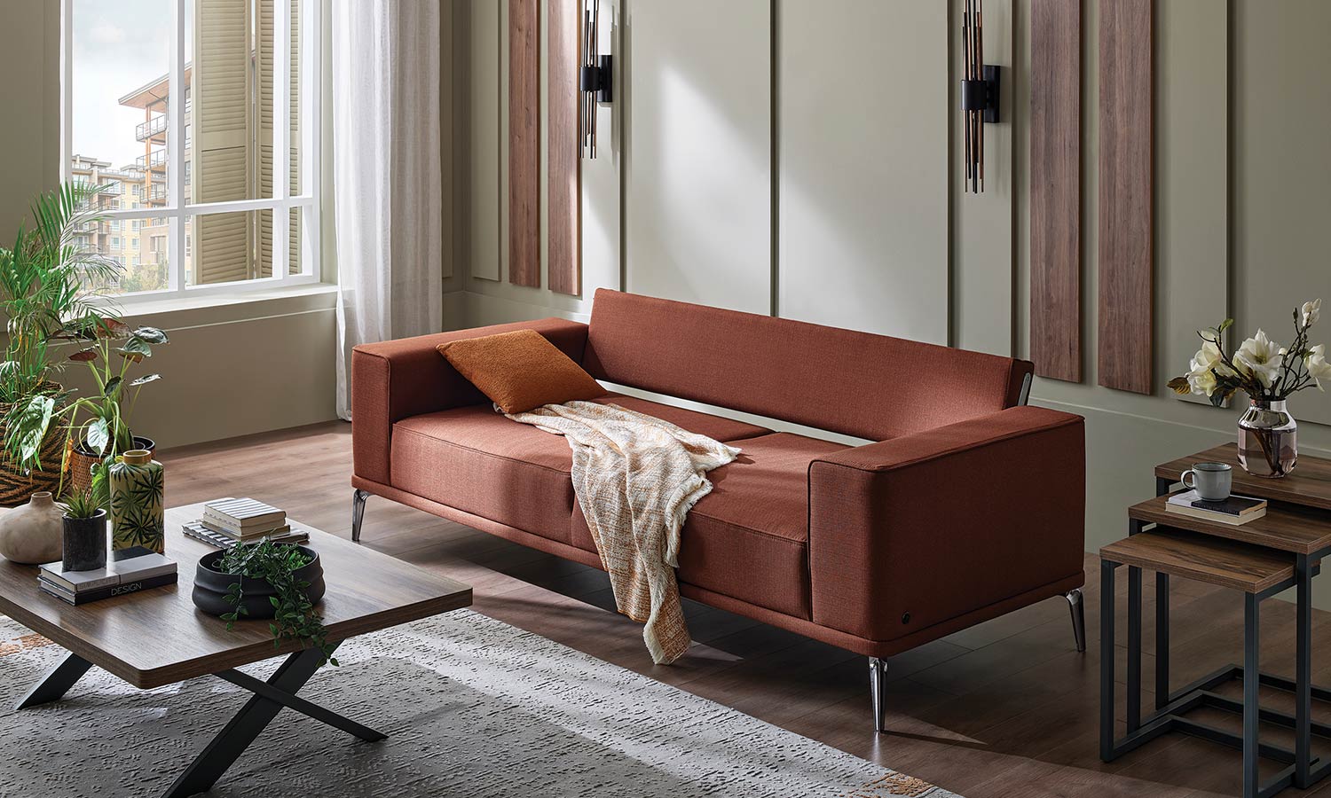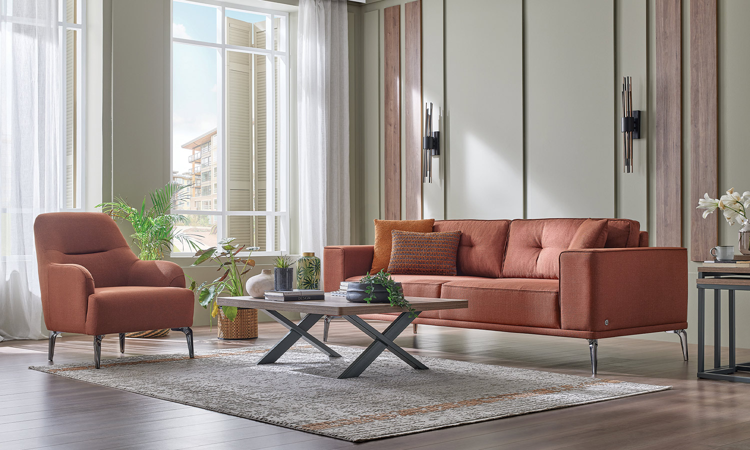 Bringing a modern interpretation to the decoration, the Ravel Living Room offers fabric and color varieties while combining comfort and aesthetics with the stylish and comfortable back cushion application. It offers versatility in use with the 3-seat and 2.5-seat sofas, which have a feature to turn into a bed, and complements the harmony with its armchair. Exclusive to the design, anthracite and matte black leg form highlights the quality crafting of the series. The Ravel Living Room creates a warm and comfortable living space that is in harmony with the modern style.