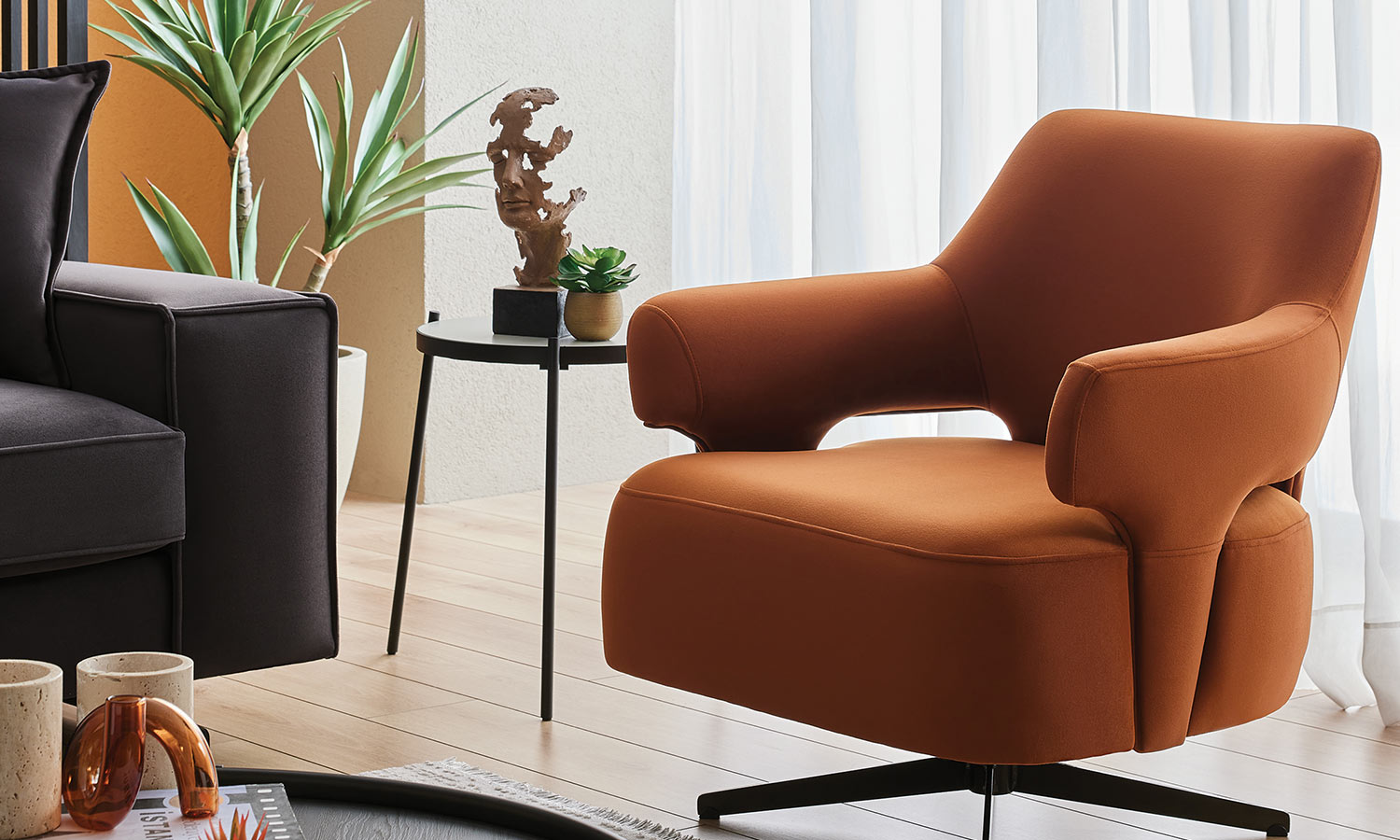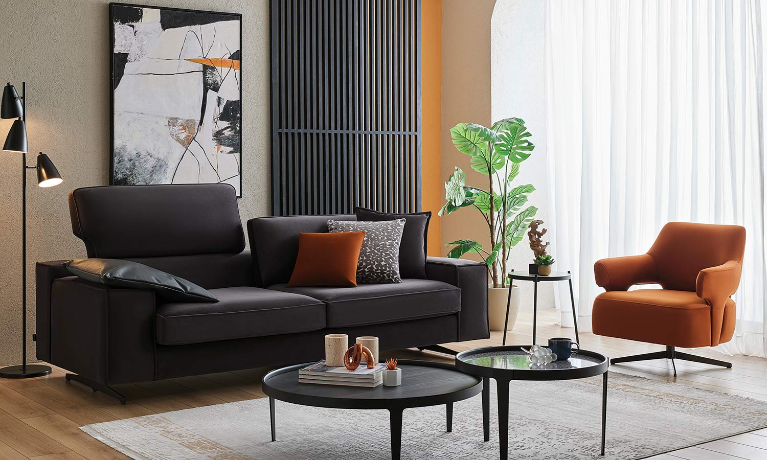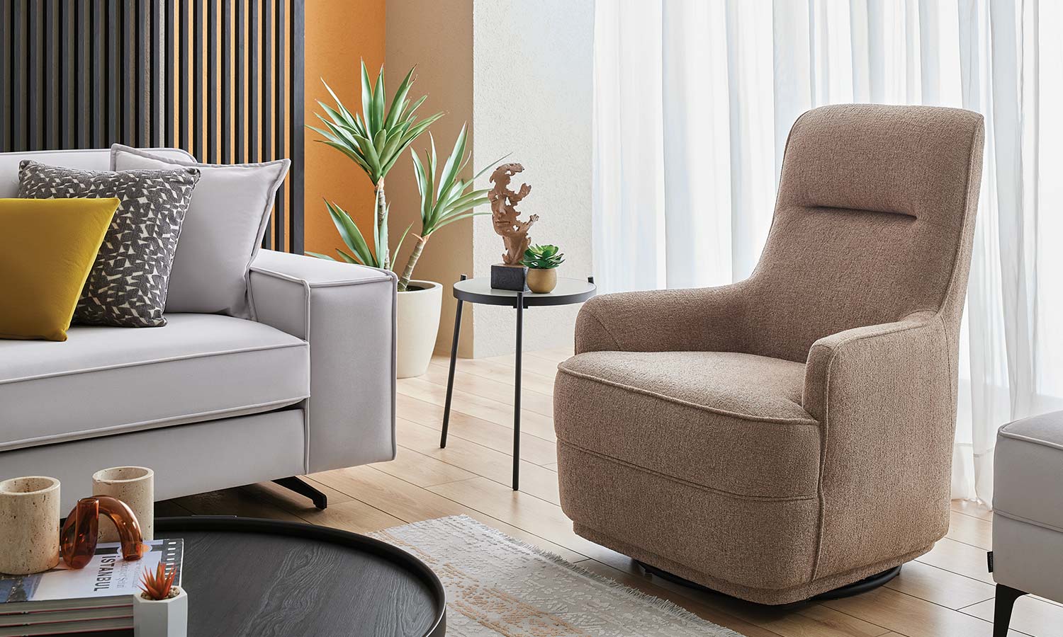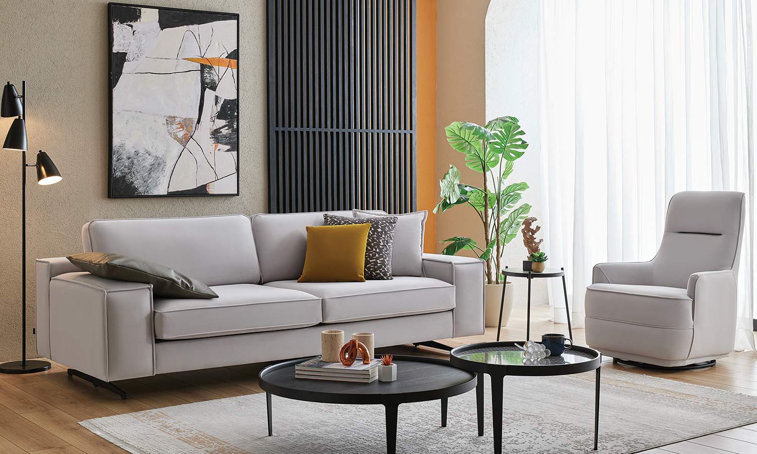 The bed mechanism of the 3-seat sofa bed offers the opportunity to be transformed into a bed for your guests, while the differently designed swivel-legged armchair modules provide flexible use. Designed as a modern TV chair, the high-backed armchair provides a comfortable seating experience as well as an aesthetic appearance to the space. The living room Ottoman, which can also be used as a lounge module together with the armchair, redefines your resting area.