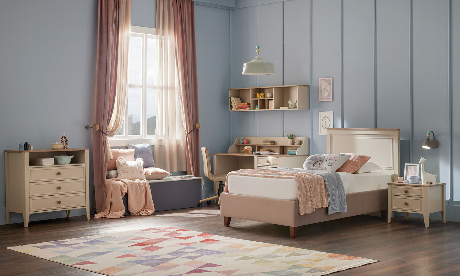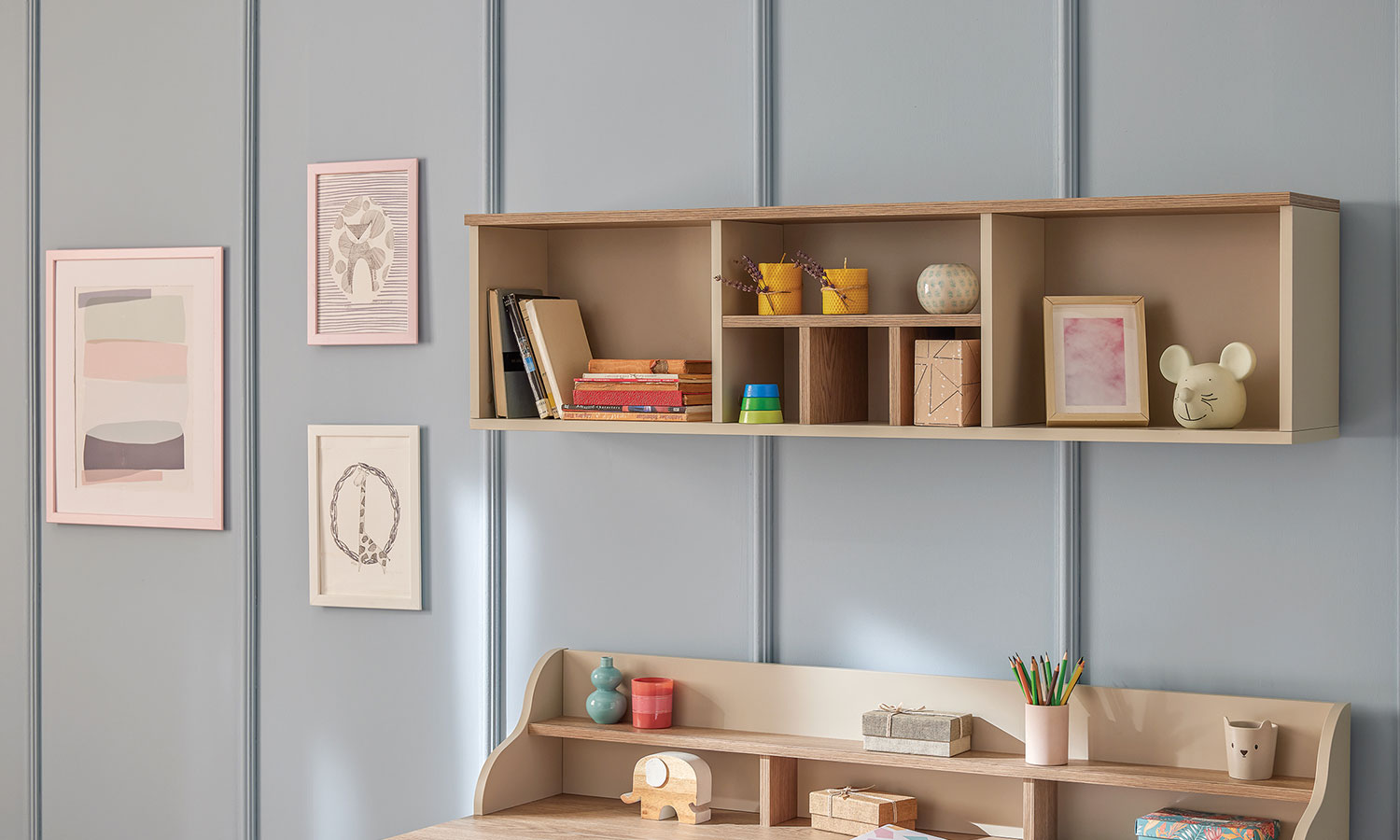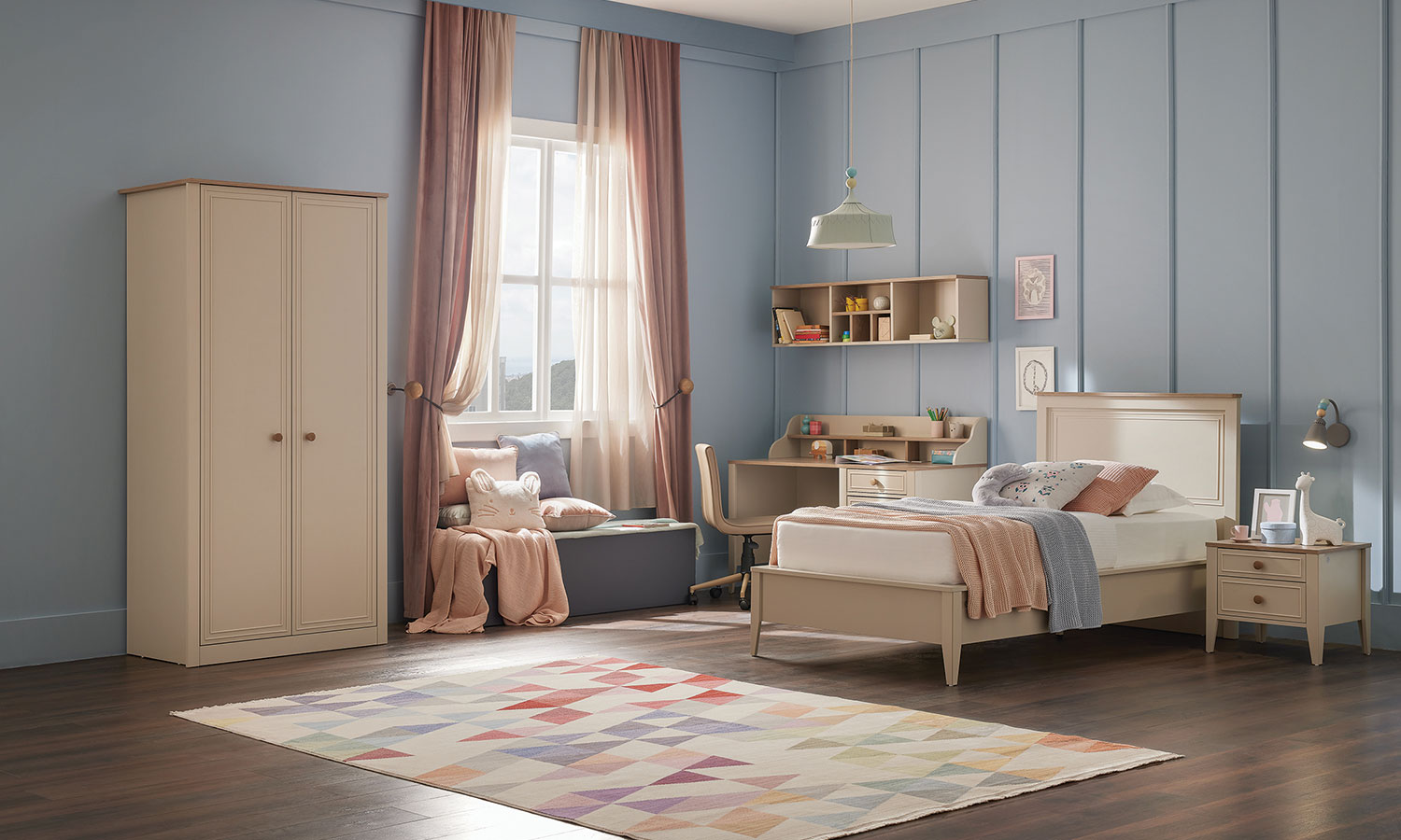 Wardrobe with 2 Doors + Study Desk + Study Desk (Upper Module With Open Shelves) + Headboard (100x200 cm)