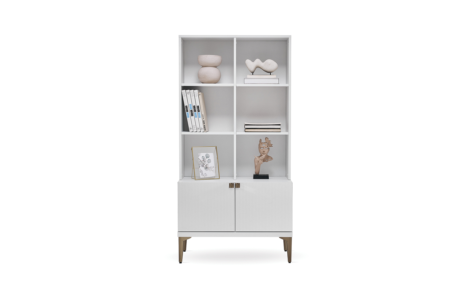 Metal handles in light bronze color matching the collection style