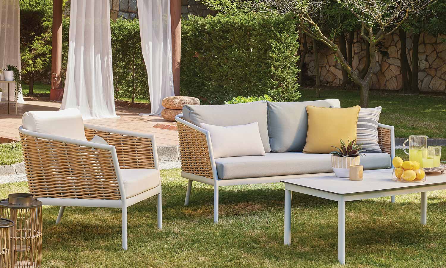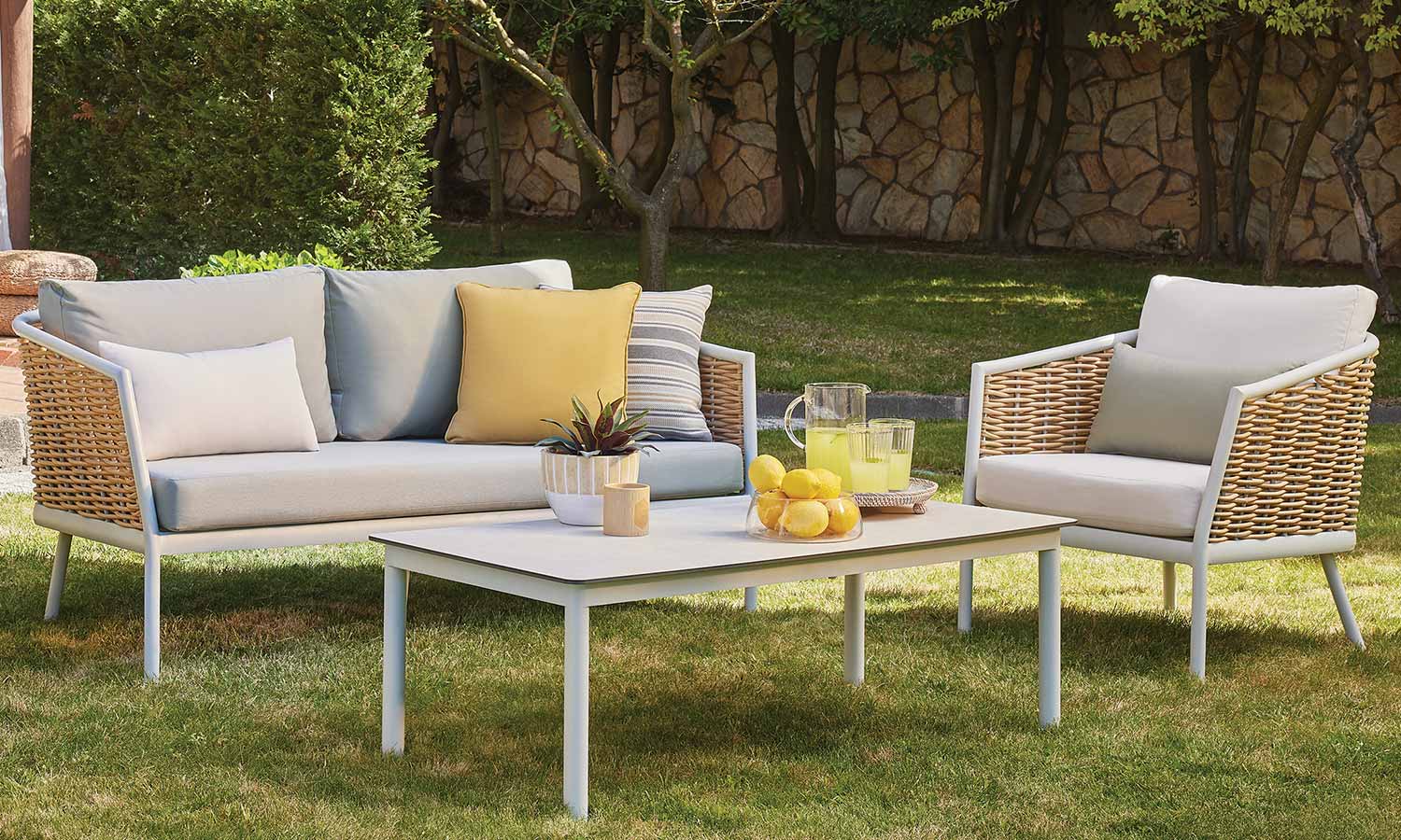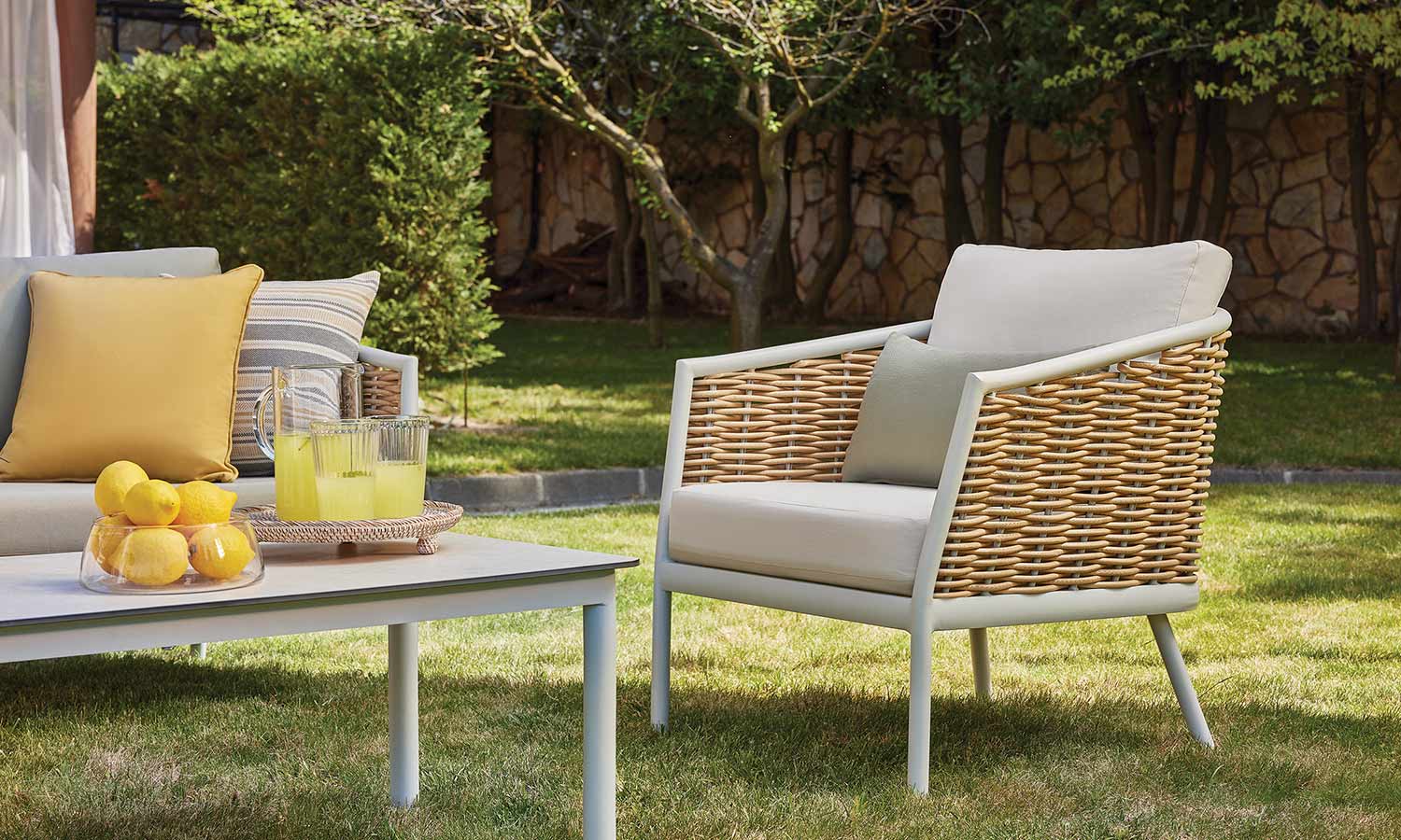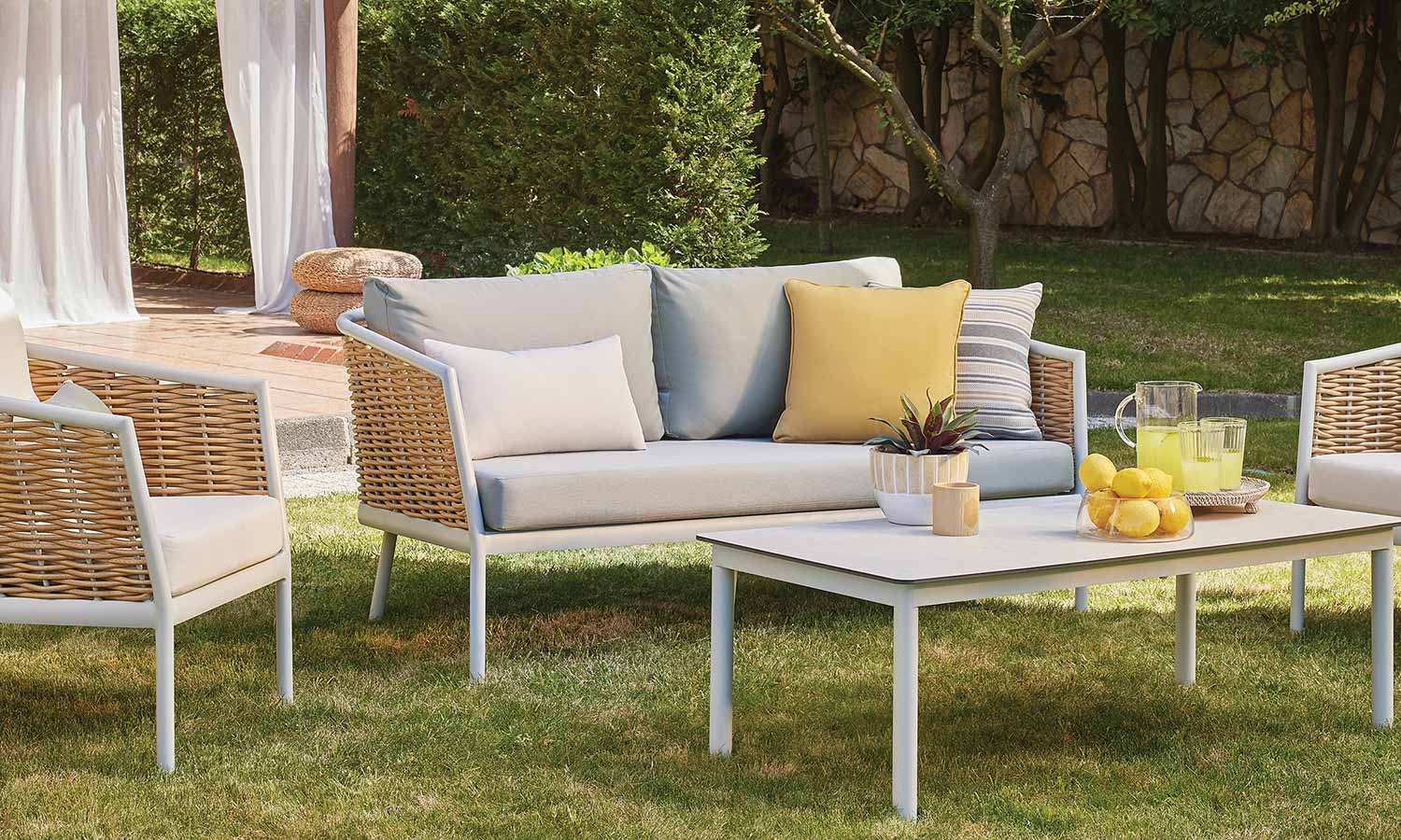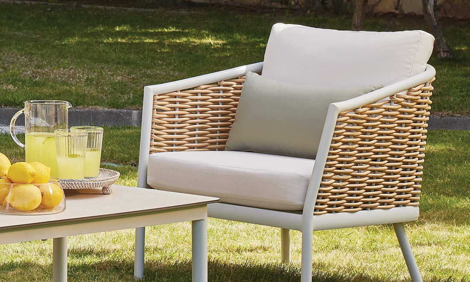 Elina Sofa Suite draws attention as a representative of timeless elegance for those who want to stand out with modern lines in outdoor decoration. The suite decorates a comfortable meeting area in your garden or balcony with its design inspired by the green and earth tones in nature. Angled arm structure and elegant rattan touches bring Elina together with the nature flawlessly, and the seating comfort is instantly noticeable. The outer look supported by modern lines emphasize naturalness and adds a warm ambiance to the space.