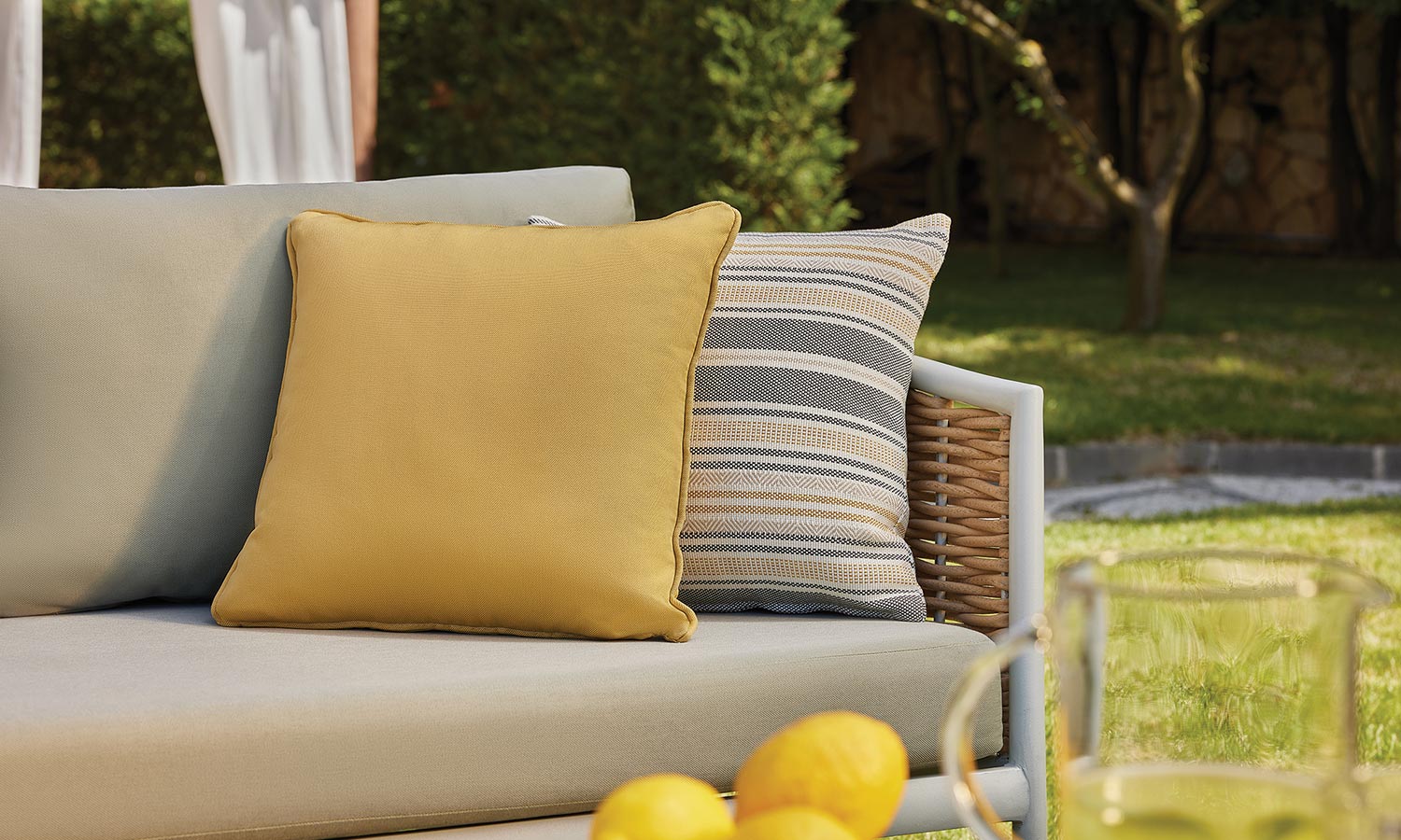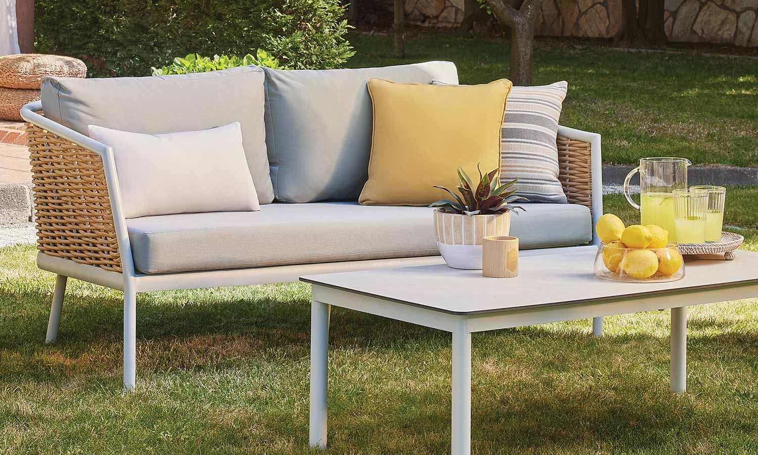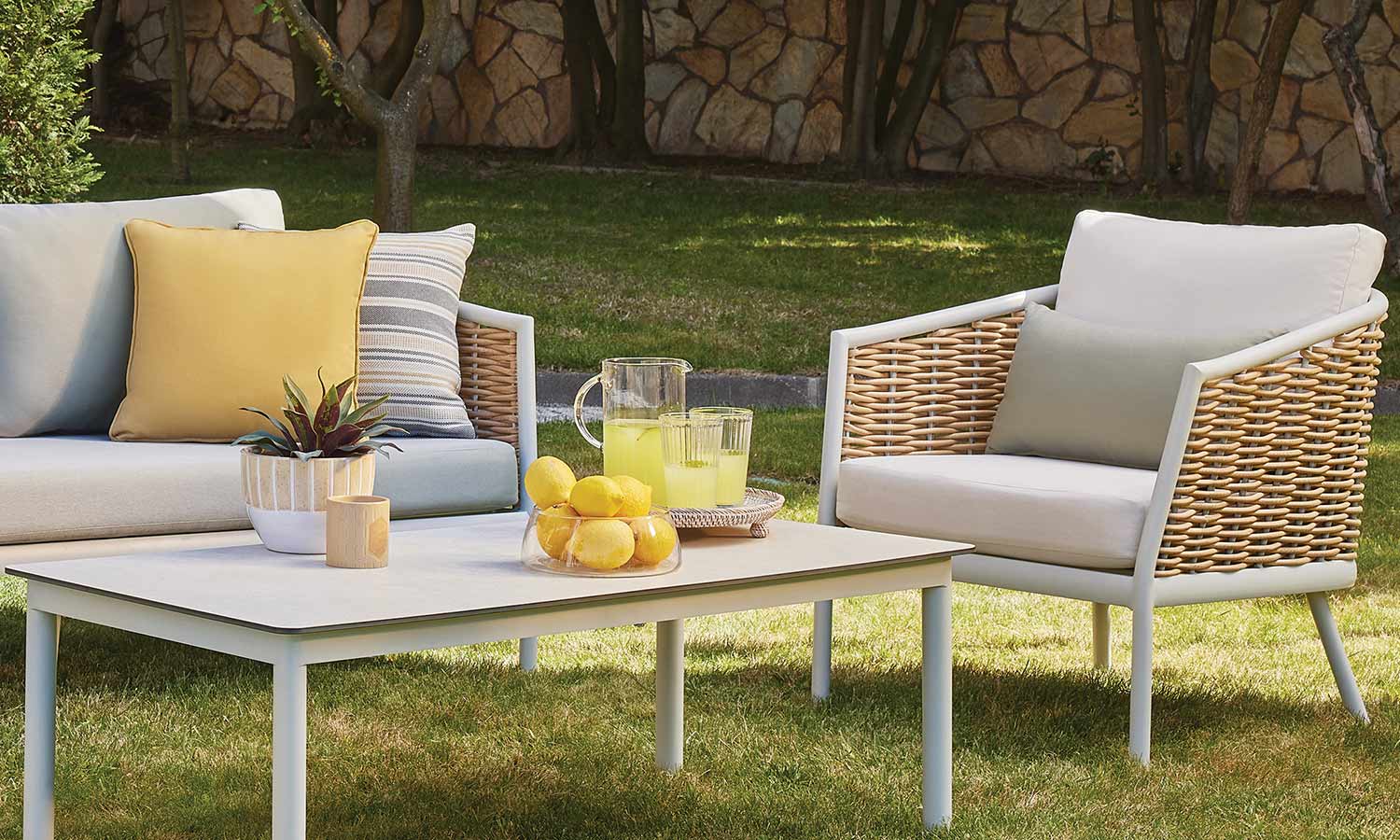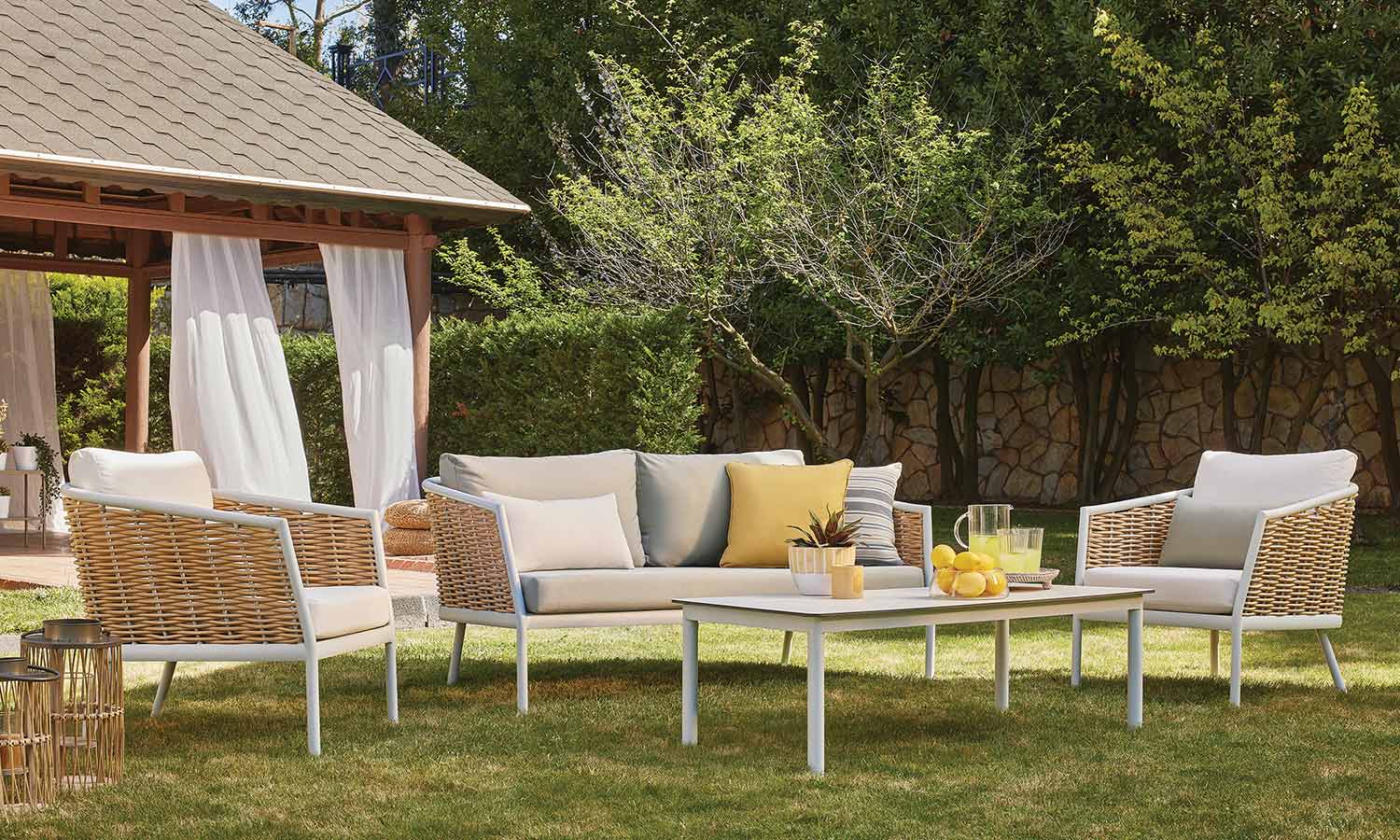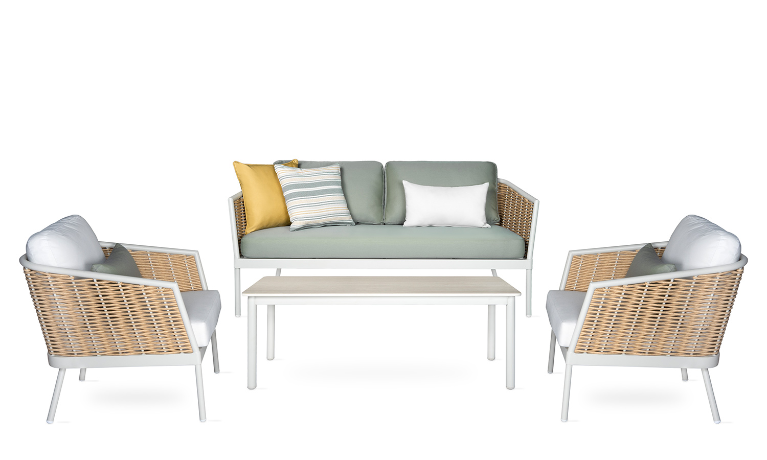 Elina Sofa Suite draws attention as a representative of timeless elegance for those who want to stand out with modern lines in outdoor decoration. The suite decorates a comfortable meeting area in your garden or balcony with its design inspired by the green and earth tones in nature. Angled arm structure and elegant rattan touches bring Elina together with the nature flawlessly, and the seating comfort is instantly noticeable. The outer look supported by modern lines emphasize naturalness and adds a warm ambiance to the space.