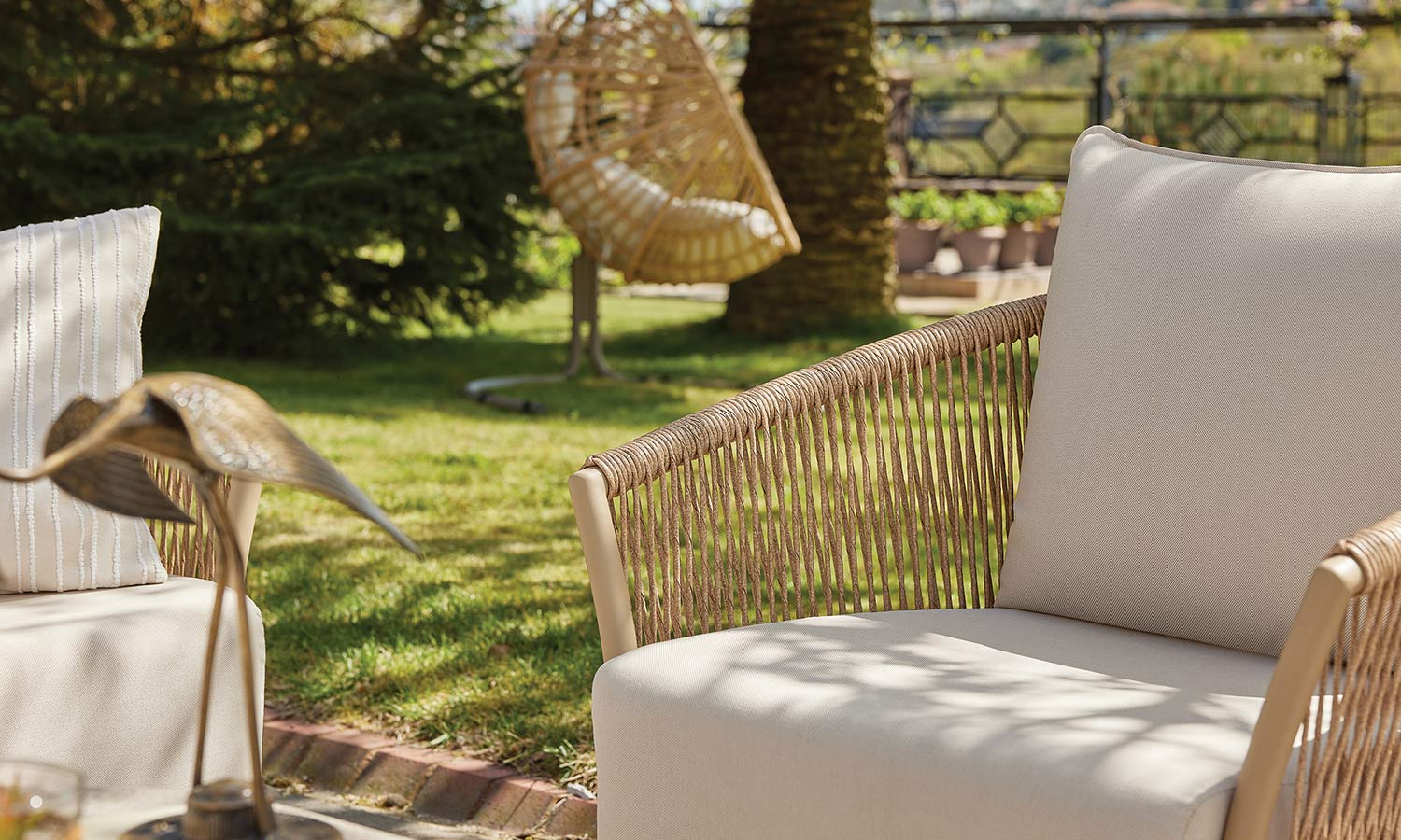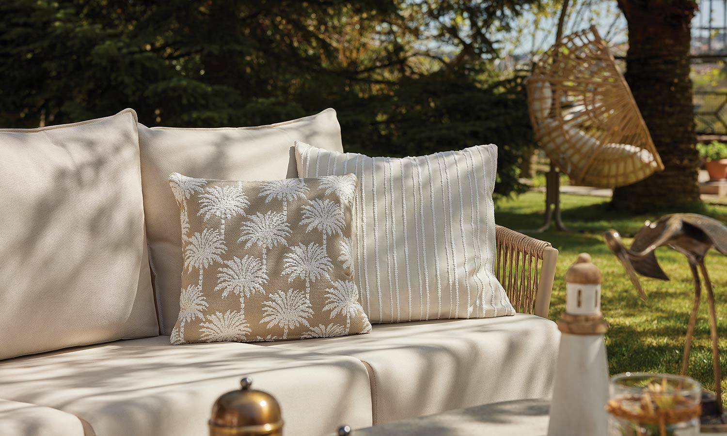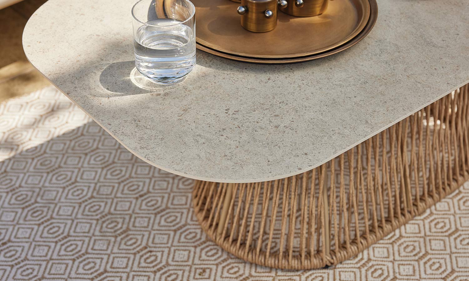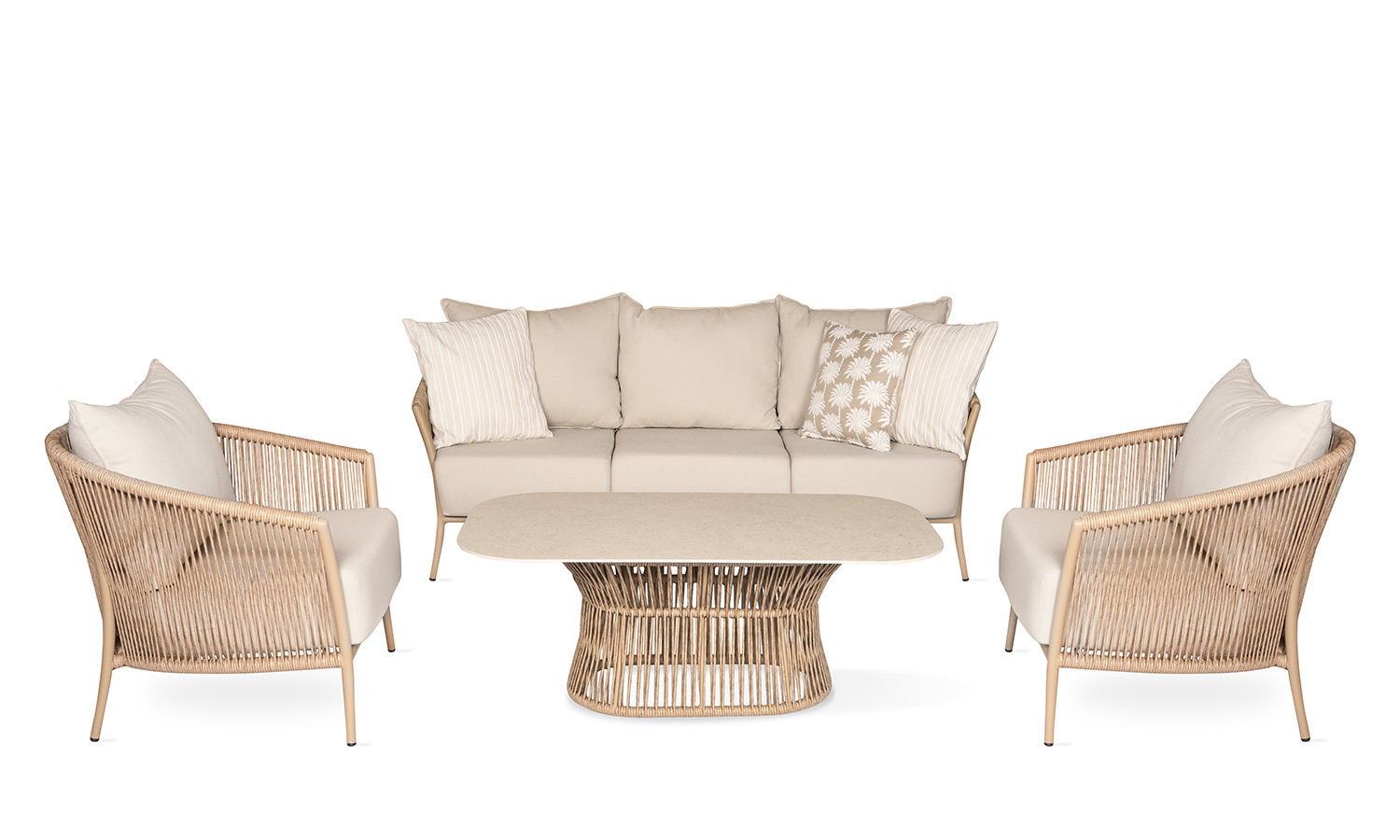 Reflecting the freshness of pastel tones in your garden, the Vanilla Sofa Suite brings comfort and aesthetics together. Puffy cushions bring the comfort of the interior to the outdoor, while beige rattan details create a warm atmosphere. Decorative throw pillows and balanced seating area allow long conversations and peaceful moments. Vanilla adds an elegant touch with its matte surface of the coffee table while offering a natural elegance to your outdoor space with its design.