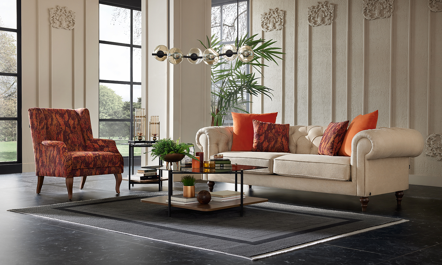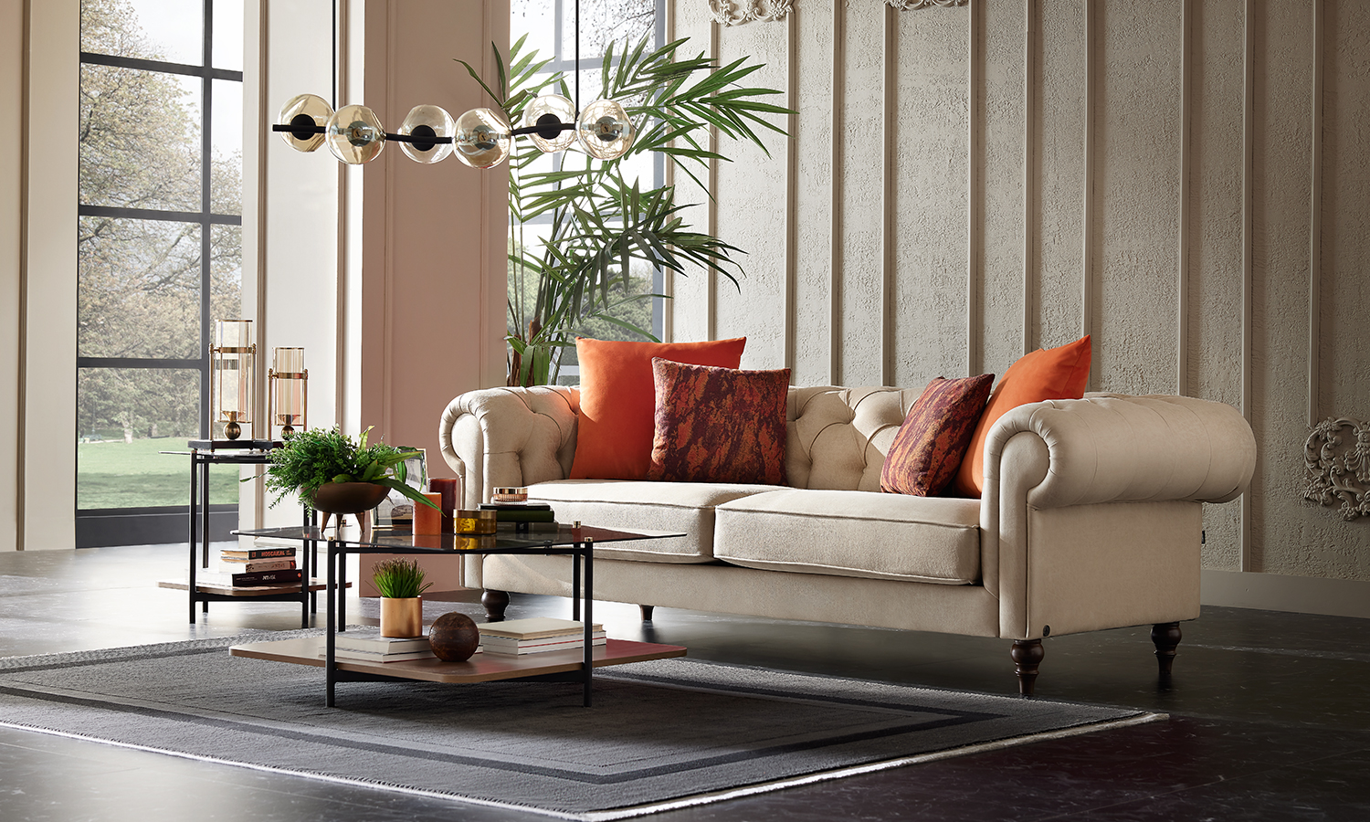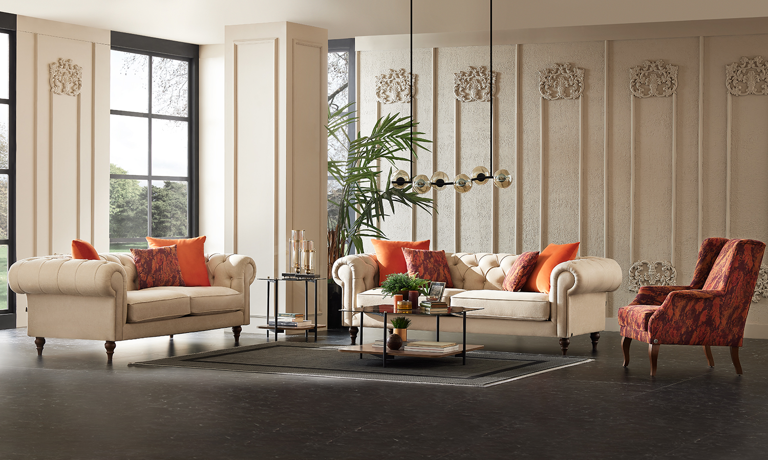 Attracting attention with its stylish and flashy design, Eliza Chester Living Room creates a fascinating living space with its flawless design. While bringing comfort to your life with its indispensable comfort, it does not compromise its aesthetics thanks to its special quilting application. It offers the opportunity to reflect your unique style with the leg options in different colours and models. The rich fabric and throw pillow applications of Eliza Chester Living Room bring contemporary and luxurious decoration style to your home.