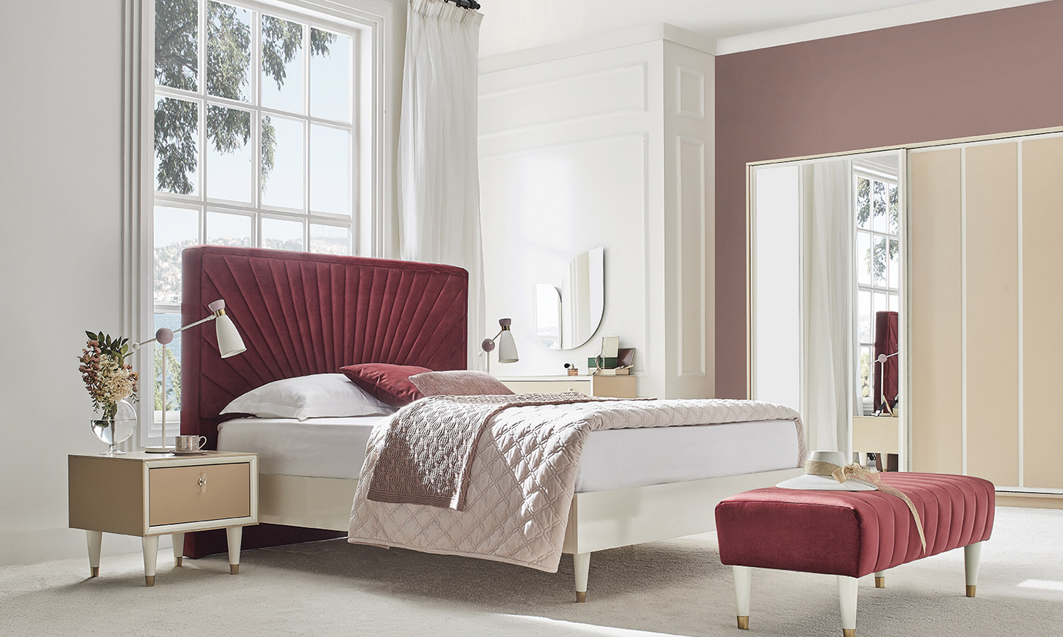 A design that combines contemporary style with classic elegance. Eva Bedroom impresses with its romantic colours and glittering details. In addition to the four and five door cabinet options, it offers useful areas with its practical sliding door cabinet module. The bedframe headboard, which distinguishes itself with special sewing details, has a warm and peaceful effect with its impressive visuality as well as colour alternatives. The dressing table, which is indispensable in traditional bedrooms, is one of the most popular parts of the latest decorations. Enriching its contemporary elegance with colour combination and Special design handles, Eva Bedroom brings you the contemporary and impressive bedroom of your dreams.
