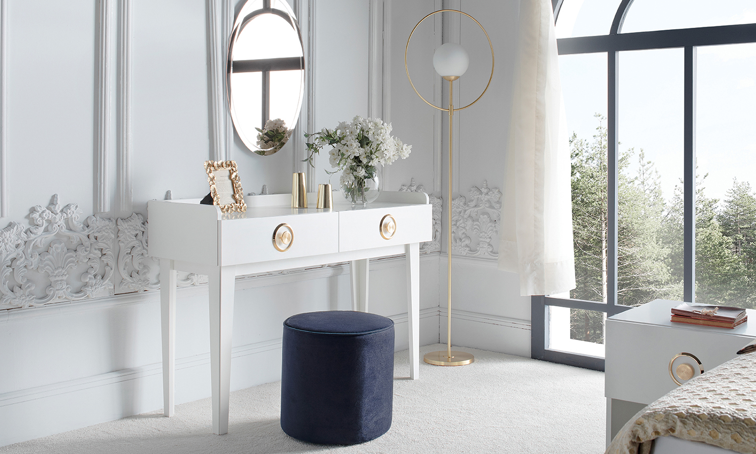 Emphasizing the contemporary design concept with its gold colour details and white surfaces, Romana Bedroom offers you the peace and tranquillity that you are looking for. Romana Bedroom enriches its contemporary and simple style with convenient and ergonomic modules. With a four- and five-door wardrobe options that are indispensable for stylish and tidy bedrooms, as well as a sliding-door wardrobe alternative with a stylish mirror that will make your room look much wider, it doesn't leave room for clutter in bedrooms. It creates a special corner for you with its vanity table module, which is an eyeful part of any traditional bedroom. Featured with its flawless design, handy modules and glittering gold colour details,Romana Bedroom is waiting for you to get your dream bedroom.
