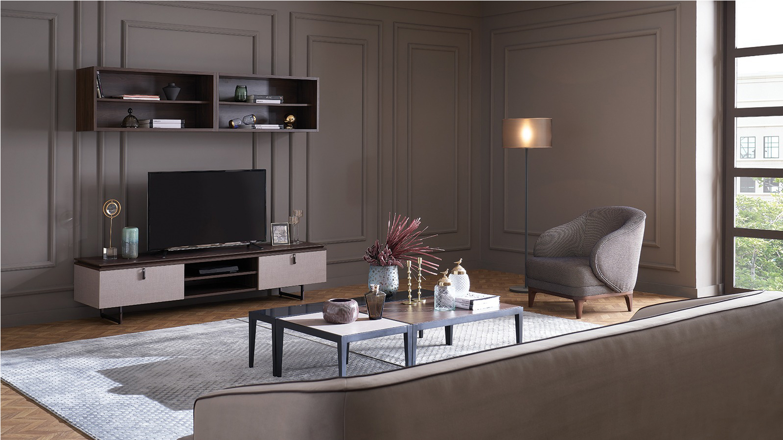 TV Unit (Large) + Upper Cabinet with Glass Doors + Upper Cabinet with Doors