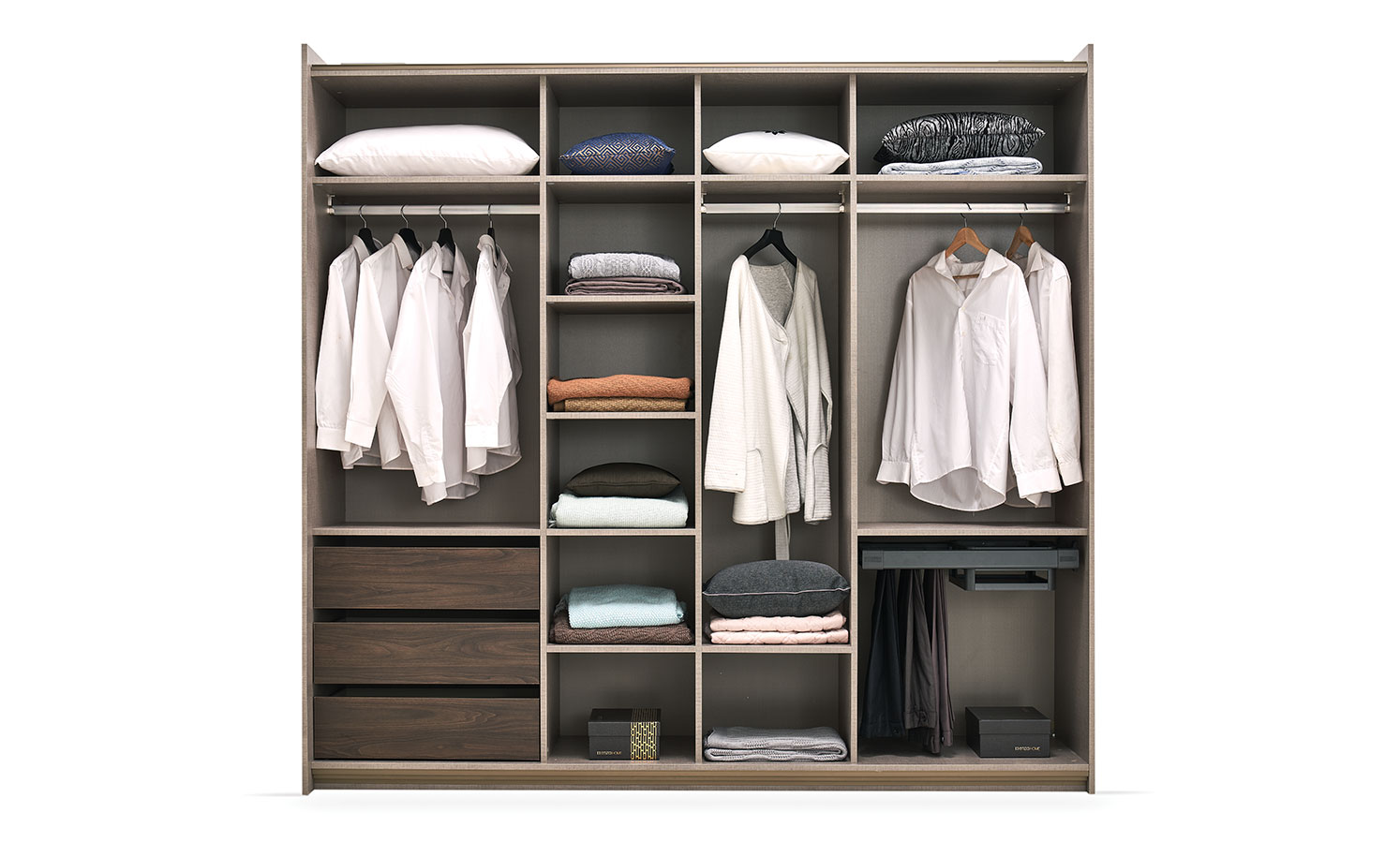 5 Doors Wardrobe + Chest of Drawers + Chest of Drawers Mirror + Bedside Table + Headboard (160x200 cm)