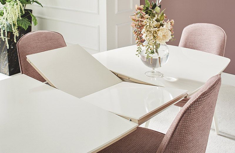 Reflecting the eye-catching harmony of caramel and pearl colours, Eva Dining Room accompanies contemporary and stylish tables. The exclusive design transparent glittering handles are the most remarkable detail of the classic elegance of the series. The sideboard design, which represents one of the most beautiful examples of contemporary design, is eye-catching with its floral mirror and elegant leg design. Complementing the romantic style with its rich visuals, Eva Dining Room fascinates with its beauty and elegance.