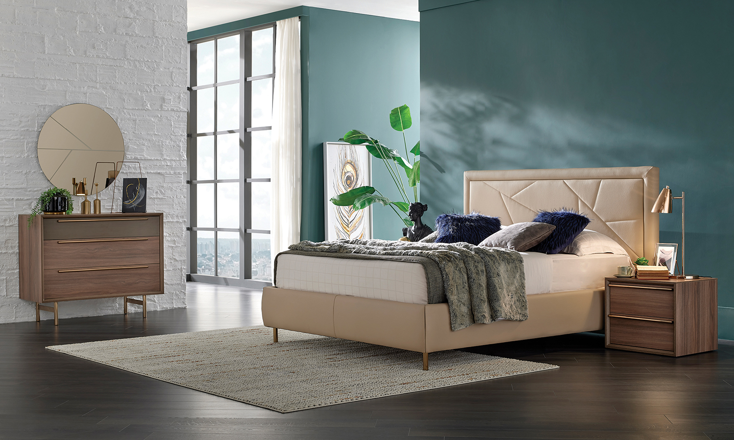 The secret of a stylish and linen look in your bedroom Lukka Bedroom attracts all the attention with its harmonious combination of bronze metal and wood texture. With 3 different wardrobe alternatives with functional drawers, it helps you to use your space efficiently and offers the most suitable storage space for your room. While maintaining the linen design of the series with its specially crafted headboard, the combination of walnut colour with brown provides an impressive decoration. Having a romantic look by featuring bronze metal details in dresser, nightstand and mirror designs, Lukka Bedroom promises an eye-catching environment in your bedroom."