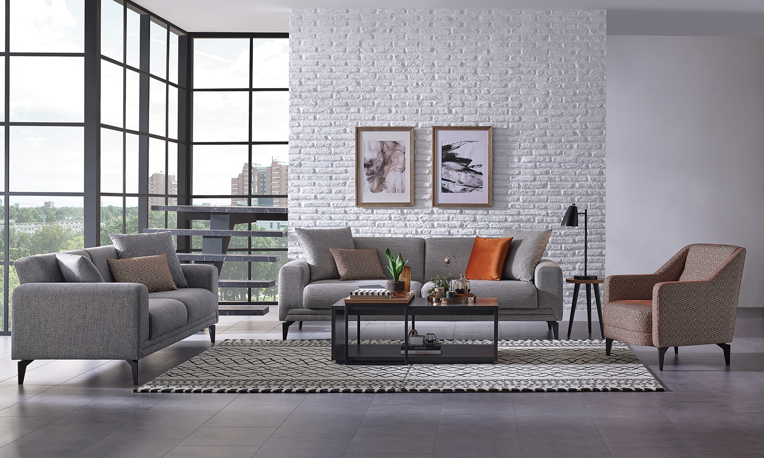 With its spacious and comfortable design, Lodi Living Room pioneers to loft style living spaces. While three seater sofa, which can be easily bed, offers spacious areas to your loved ones and you, accompanying armchair and single seater sofa alternatives carry the design you are looking for to your living room. Series’s colour alternatives, which complete its rustic breeze, and the natural looking texture create a warm living space. The leg alternatives in matt black and walnut facilitate cleaning thanks to their high structure from floor. Minimal and functional Lodi Living Room carries the comfort of being natural to your home.