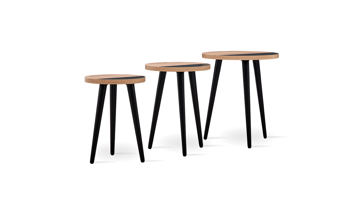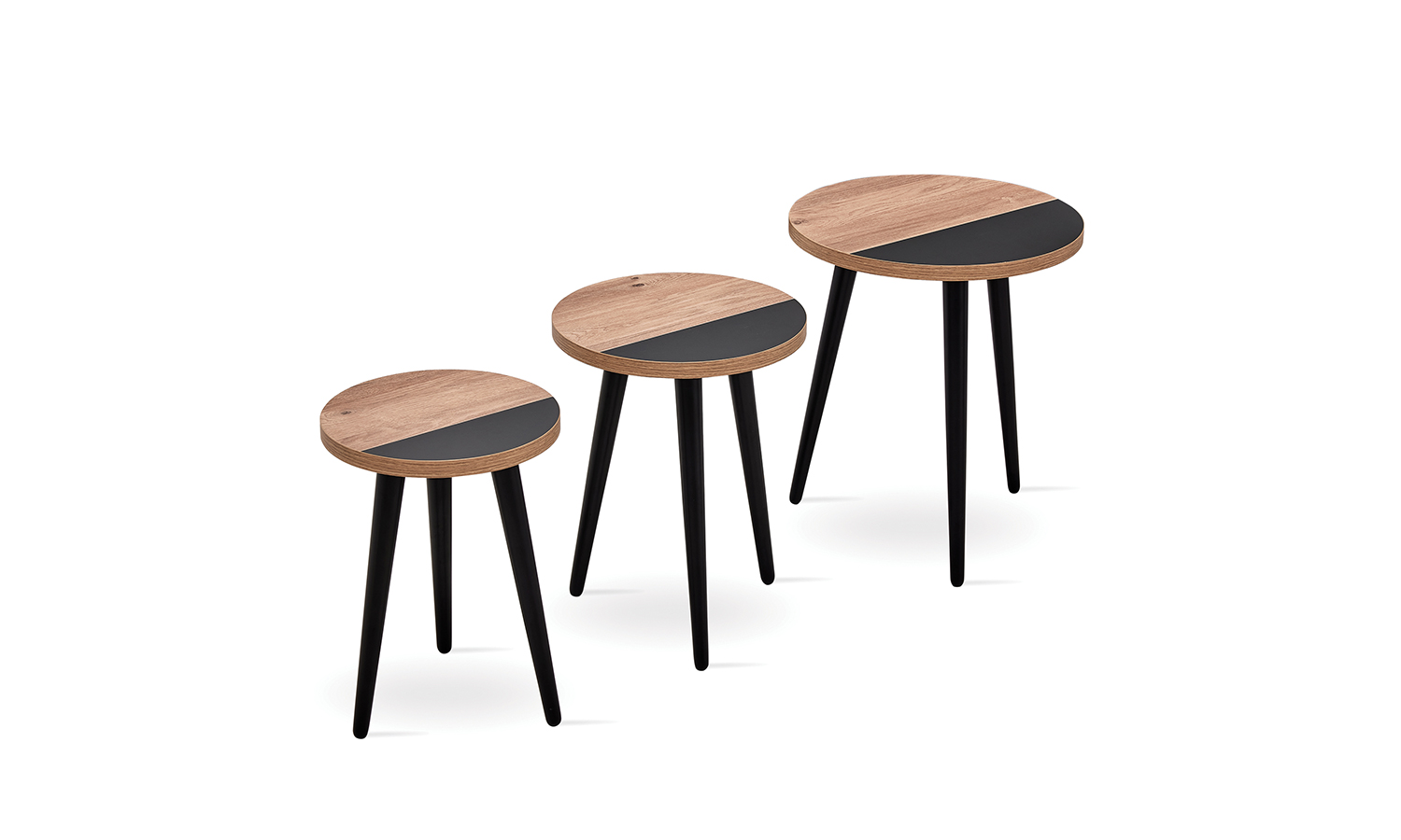 The functional coffee tables of Lodi Series with different sizes create contemporary living spaces with their metal leg applications. Protecting its minimal line, coffee and nesting table designs gain movement with the harmony of dark grey and light oak colours.