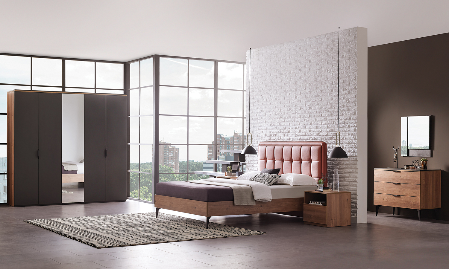 Providing spaciousness and freedom in room decoration, Lodi Bedroom creates a different and minimal place with the combination of light oak and dark grey. While providing a storage space suitable for your needs in your bedroom by offering 7 different wardrobe options, the dark grey colour application on the wardrobe doors enhances the rustic effect. It adds a new look to your bedroom by maintaining the series’s special wooden look and original mirror design on its chest of drawers. While its elegant headboard completes the series’s contemporary texture, its options with storage and bedframe provide a functional use. As a reflection of the nature, Lodi Bedroom brings the loft modernity to your bedroom.