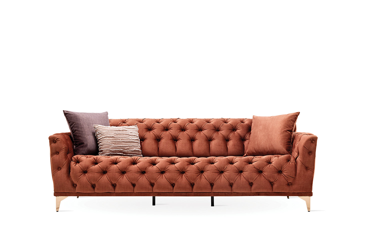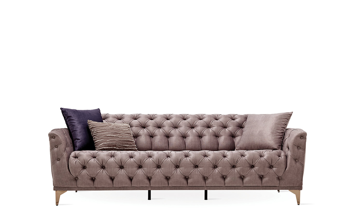 Leona Living Room adds elegance to every area with its sophisticated details. The 3-seat sofa meets your supreme comfort standards with its easy-to-open bed mechanism, while completing its elegance with qualified handcrafted quilted sewing applications. Specially designed throw pillow and fabric applications offer you the most flashy option for your living room, while creating a combination compatible with the series thanks to different leg alternatives. Leona Living Room designed with contemporary-classic style, is waiting for you to accompany your pleasant conversations with your loved ones.