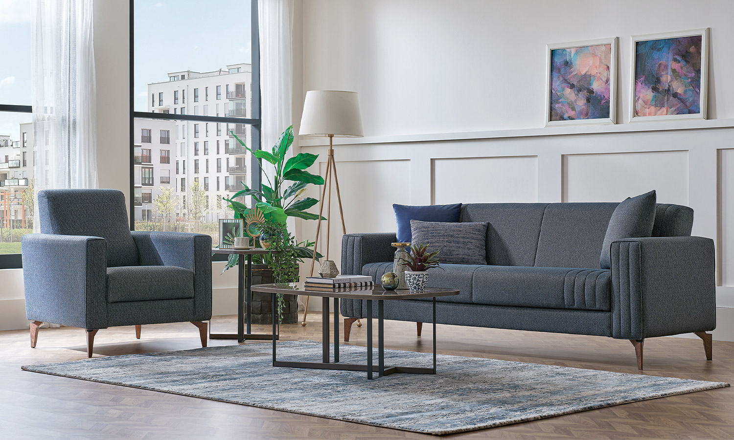 Vina Sofa Collection combines the seating structure that provides supreme comfort with its contemporary and functional design. It brings functionality to your home by offering a useful solution with its easily extendable/closing mattress mechanism and chest feature that provides extra storage space. While the walnut-coloured high leg structure meets different usage needs, the linen and velvet textured fabric colour chart options bring together comfort and aesthetics.