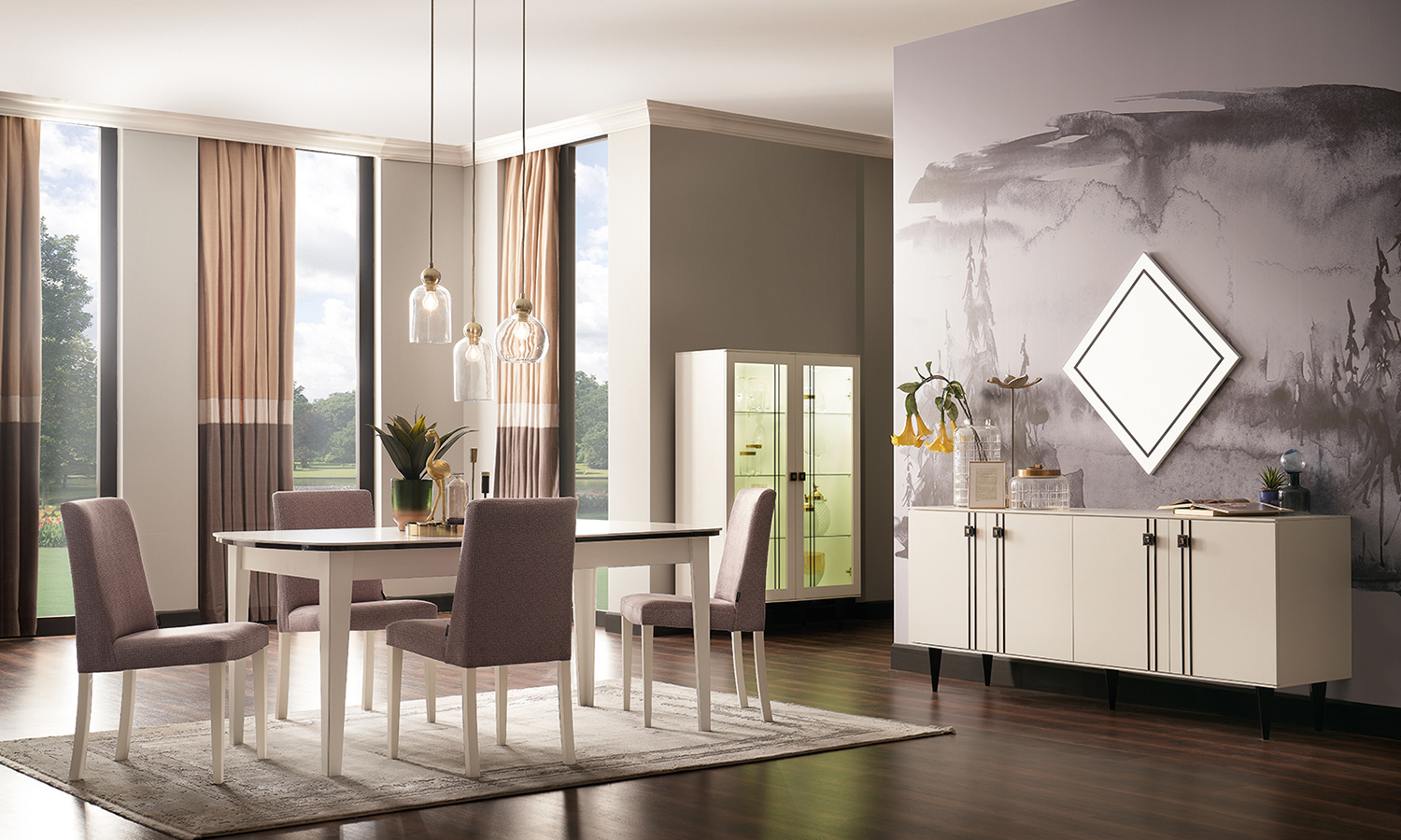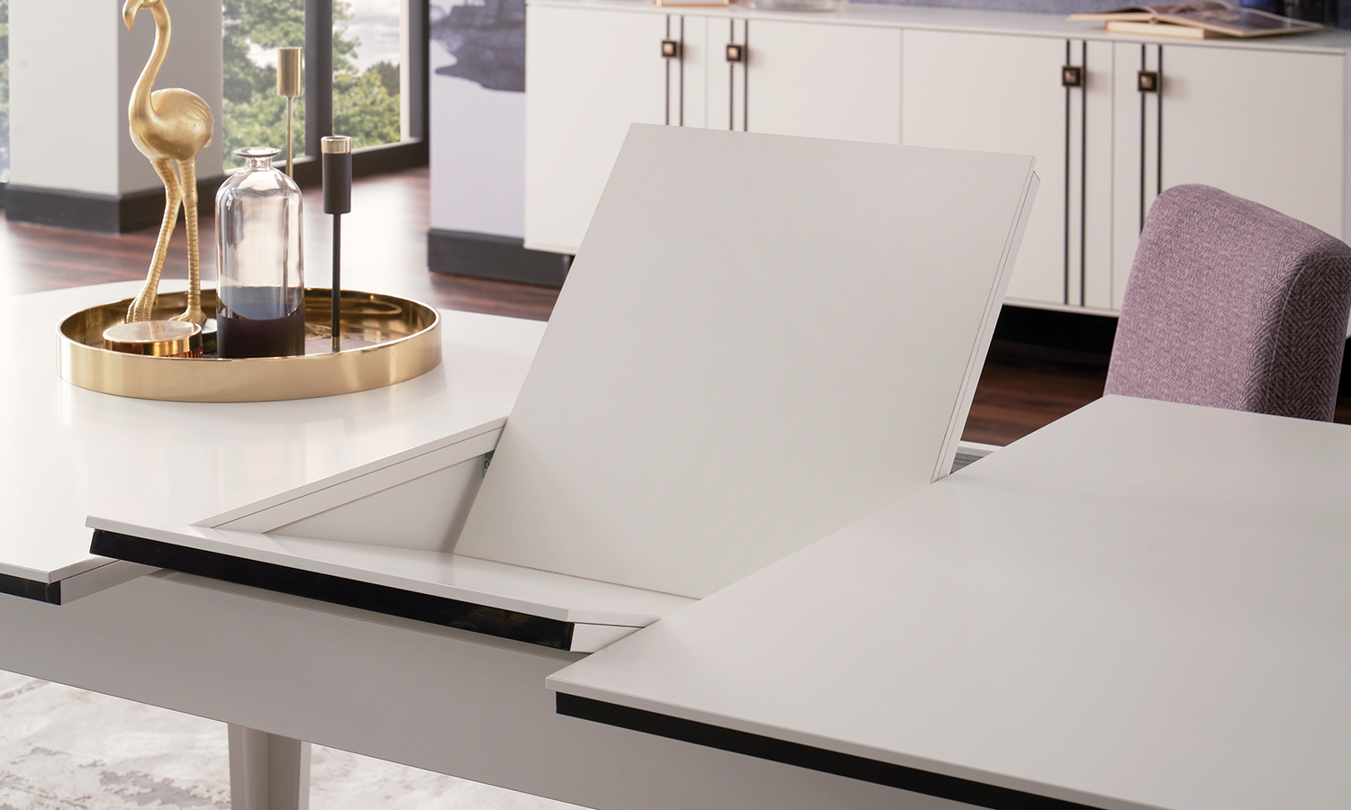 The Deco Dining Room brings the traditional beauty of white colour to the dining rooms. The subtle black stripe details and special handles designed in the modern-classic style which are highlighting the lean elegance of the series stand out. Extendable and fixed dining table alternatives promise pleasant meal times for you and your guests.