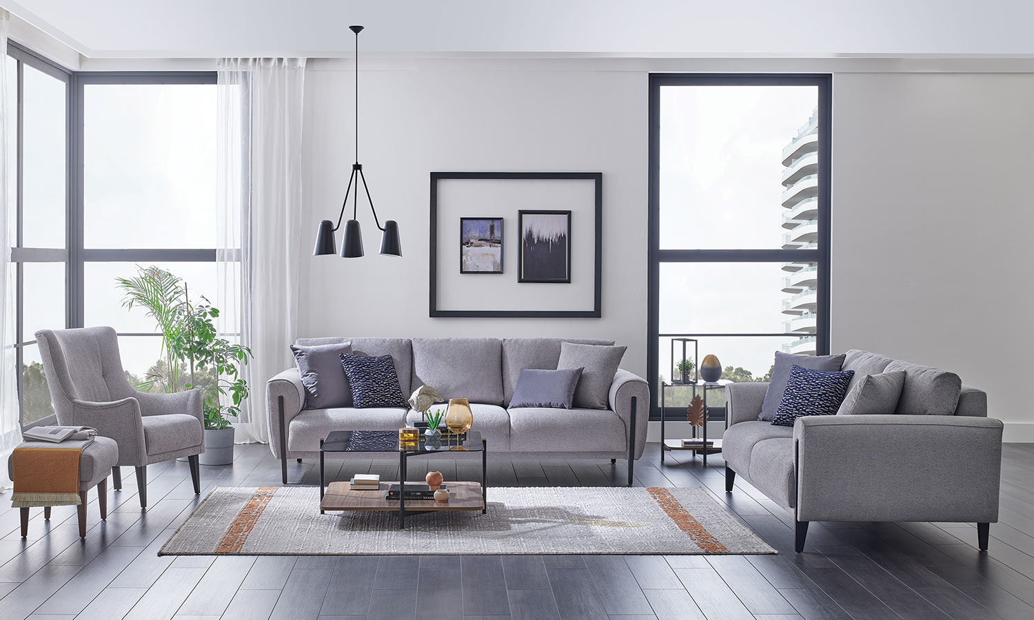 Puerta Living Room, which has a modern and simple design, brings comfort and aesthetics together with its special crafting and back cushions that support seating. While offering rich combinations with its linen-looking fabric and color alternatives, it also brings functionality to living spaces with its feature to turn into a bed.