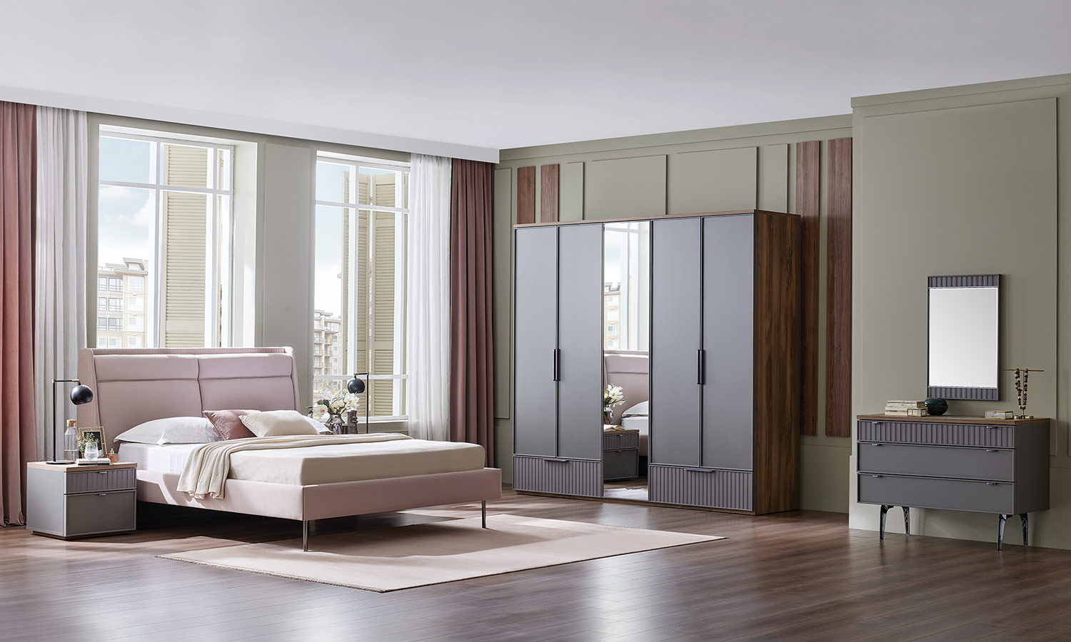 When the authentic design of the Ravel Bedroom meets the modernity of gray and the naturalness of wood, aesthetics and comfort come together. In addition to the wardrobe alternatives with 5 doors or sliding doors, the folding wardrobe module with 6 doors offers functional and stylish solutions for personal needs of use. It emphasizes the aesthetics of the series with the texture application used in the design of the headboard, which offers a choice of storage bed or a bedframe. Combining its modern style with the timelessness of the wood, the Ravel Bedroom brings functionality together with the design.